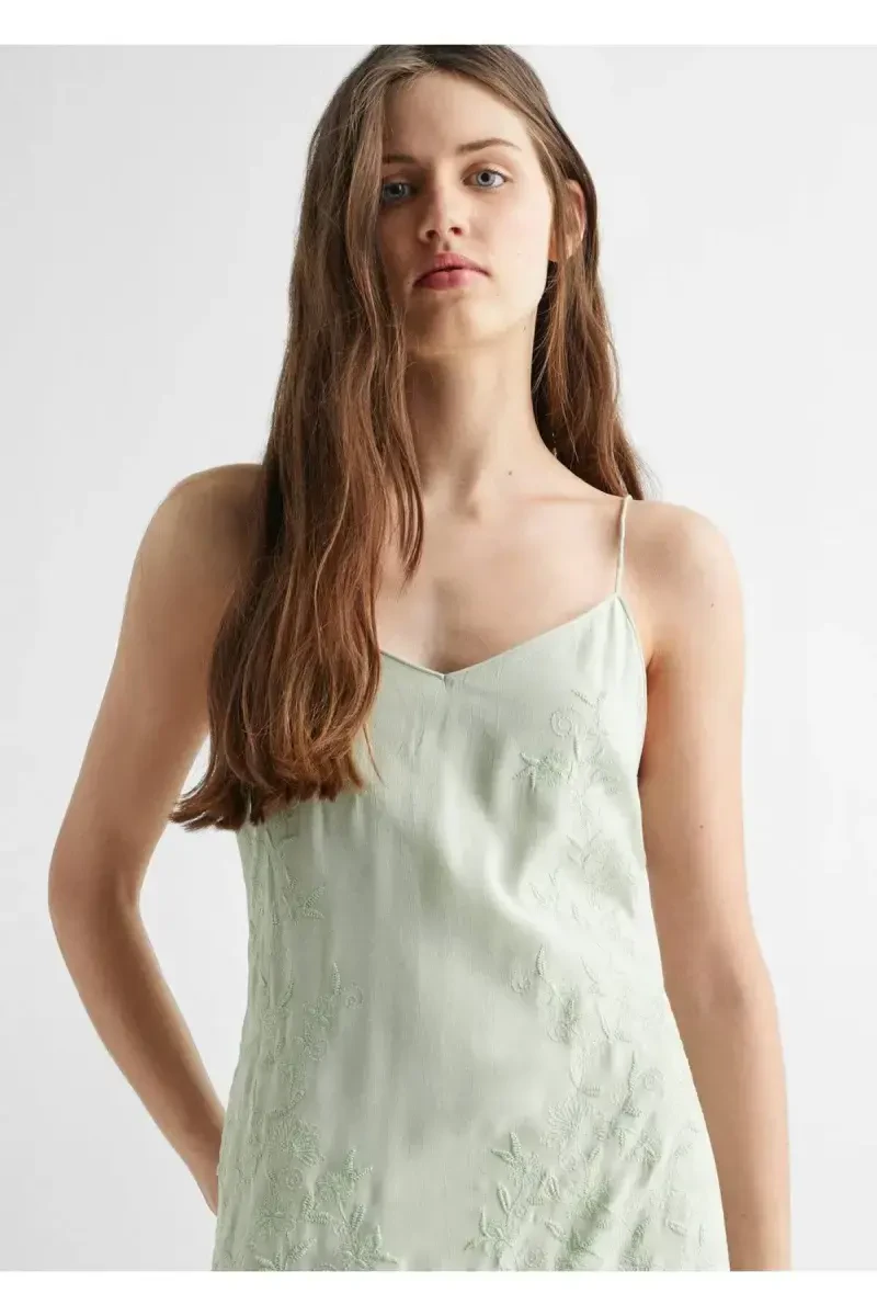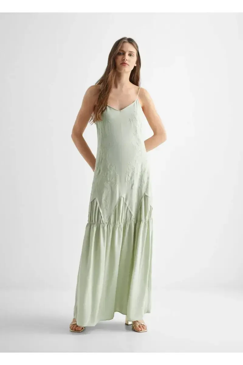 Embroidered Long Dress - Green, offers comfort and convenience throughout the day thanks to its knitted fabric structure. Combining elegance and grace with its long design, this dress can be easily combined with all kinds of shoes. Its simple and plain pattern creates a timeless style, while allowing personalization with different accessories. The V-neck cut elegantly emphasizes the décolleté area, giving a feminine stance. Thanks to its regular fit, it has an ideal fit that hugs the body lines without squeezing. In this way, it offers freedom of movement. The tulle weave type gives the dress a light and airy structure, so you can stay cool even in hot weather. The dynamic and vibrant design appeals to the young age group and creates an energetic look. This dress, which is suitable for everyone, appeals to all age groups and has a wide range of users. It is an ideal choice for those looking for elegance and comfort together. Embroidered details add a unique touch to the dress, while the green color symbolizes naturalness and vitality. This long dress, which you can easily prefer in any environment from special invitations to daily use, is a candidate to be one of the indispensable parts of your wardrobe. When maintained in accordance with Type 1 washing instructions, it offers long-lasting use. This dress is not just a piece of clothing, but also a way of expressing your style. This special design, offered with Trendyol's assurance, is an opportunity not to be missed for those who want to combine elegance and comfort.
