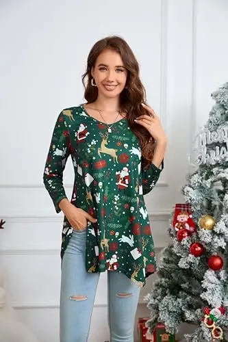 ENMAIN Ayollar Tunikasi Yuqori 3/4 Uzunlikdagi Yeng Plus Hajmli Uzun Toplar Leggingslar bilan Kiyish uchun Kundalik Keng Kiyim Yaxshi Yengil Bluzkalar