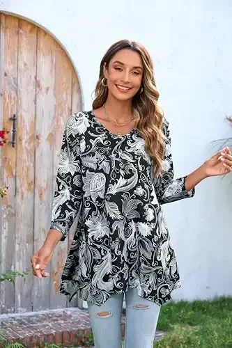 ENMAIN Tunic Tops bilan garderobingizni yangilang! Ushbu ko'p qirrali va zamonaviy tunikalar qulaylik va nafosatni birlashtirib, har qanday muhitda ajralib turishingizni ta'minlaydi. 3/4 uzunlikdagi yengli dizayn ayollik tuyg'usini qo'shsa, keng bichimi kun bo'yi harakatlanish erkinligini saqlaydi. Ayniqsa legginglar bilan yaxshi mos keladigan bu tunikalar kundalik foydalanish va maxsus tadbirlar uchun ideal tanlovdir. Plus size variantlari bilan har bir tanaga mos alternativalarni taklif etuvchi ENMAIN tunikalari tana chiziqlarini mukammal tarzda yashirib, o'ziga bo'lgan ishonchingizni oshiradi. Dumaloq va V shaklidagi yoqa variantlari bilan taqdim etilgan ushbu tunikalar zamonaviy uslubning vakili hisoblanadi. Qorin va dumba sohasini nafis tarzda qoplaydigan uzunligi tufayli siz har doim zamonaviy va qulay his qilasiz. ENMAIN tunikalari sizning garderobingizning ajralmas qismiga aylanishga tayyor! Kundalik faoliyatingizda bo'lasizmi yoki maxsus kechada, siz har doim uslubingizni ko'rsata olasiz. Keng bichimi va qulay matosi tufayli u kun bo'yi qulay tajriba taqdim etadi.ENMAIN Tunic Tops nafaqat zamonaviy ko'rinishni taqdim etadi, balki yuqori sifatli materiallari bilan ham e'tiborni tortadi. 95% poliester va 5% elastan aralashmasidan tayyorlangan ushbu tunikalar yumshoq tuzilishi bilan teringizga muloyimlik bilan tegadi. Elastik tuzilishi tufayli u tanangizga mukammal moslashadi va harakatlaringizni cheklamaydi. Yengil va tez quriydigan mato, ayniqsa yoz oylarida salqin va tetiklantiruvchi his beradi. Bundan tashqari, matoning elastik tuzilishi homiladorlik paytida ham qulay foydalanish imkonini beradi.Tasodifiy tunika uslubi, mos va kengaytiruvchi bichimi, old qismidagi batafsil tikuvlar va burmalar ENMAIN tunikalariga noyob ko'rinish beradi. Paisley, gul va boshqa nashrlar bu bluzkalarga o'ziga xos go'zallik bag'ishlaydi va siz qayerga borsangiz ham e'tiborni tortadi. Ushbu tunikalar shunchaki kiyim emas, balki san'at asaridir. Ularning har biri ehtiyotkorlik bilan yaratilgan naqshlari va ranglari bilan uslubingizni aks ettirishga yordam beradi.ENMAIN Tunic Tops turli xil uslub va didlarga mos keladigan keng rang va naqshlar palitrasini taklif etadi. Yorqin va energiyali ko'rinish uchun gul naqshlarini yoki yanada sodda va zamonaviy uslub uchun bir rangli variantlarni tanlaysizmi, siz har doim o'zingizni yaxshi his qiladigan variantni topishingiz mumkin. Ushbu tunikalar garderobingizdagi boshqa buyumlar bilan osongina birlashtirilishi mumkin va turli xil uslublarni yaratishga imkon beradi.Ushbu tunikalar kundalik foydalanish, shuningdek, maxsus tadbirlar uchun ham ajoyib tanlovdir. Ular homilador ayollar, o'qituvchilar, ta'tilga chiquvchilar, ofis xodimlari, Sevishganlar kuni, Rojdestvo, bitiruv, Onalar kuni kabi ko'plab turli vaziyatlar va tadbirlar uchun ideal. Xarid qilishga borayotganda, ziyofatga qatnashayotganda, sport bilan shug'ullanayotganda yoki uyda dam olayotganda ularni osongina kiyishingiz mumkin.ENMAIN Tunic Tops shunchaki kiyim emas, balki turmush tarzidir. U qulaylik, nafosat va ko'p qirralilikni birlashtirib, har bir ayolning garderobida bo'lishi kerak bo'lgan buyumdir. O'zingizni maxsus va go'zal his qilish uchun ENMAIN Tunic Tops-ni tanlang va uslubingizni ko'rsating!