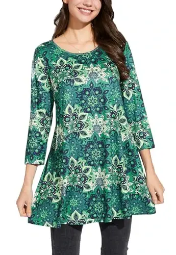 ENMAIN Kadın Üstleri 3/4 Kol Büyük Beden Tunikler, taytlarla giymek için ideal, şık ve rahat bol bluzlar, hareketli kesim tişörtler S-5XL beden aralığında sunulmaktadır. Bu tunikler, klasik yuvarlak yakalı ve büyük bedenler için tasarlanmış olup, özellikle karın ve kalçaları kapatacak uzunluktadır. Esnek kumaşı sayesinde hamileler için de uygun bir seçenektir. Taytlarınızla kombinleyebileceğiniz bu büyük beden tuniklerle kendinizi rahat ve şık hissedin. Yüksek kaliteli ve süper yumuşak dokusuyla öne çıkan bu tunikler, esnek, hafif ve nefes alabilen yapısıyla yaz aylarının vazgeçilmezi olacak. Boho tarzı çiçek desenleriyle hareketlendirilen bu tişörtler, yazlık gardırobunuzun olmazsa olmaz parçalarından biri. Gündelik kullanım için mükemmel olan bu kadın bluzları, taytlar, siyah pantolonlar ve denim ceketlerle kolayca kombinlenebilir, ultra şık bir görünüm elde etmenizi sağlar. Serin havalarda katmanlı giyim için ideal olan bu boho esintili kadın giyim parçalarını, plaj örtüsü, yazlık günlük giyim veya hamile üstü olarak da kullanabilirsiniz. Her duruma uygun olan bu moda ve temel üstler, günlük kullanımın yanı sıra hamilelik, öğretmenlik, tatil, ofis işleri, randevular, alışveriş, partiler, spor, açık hava etkinlikleri, ev giyimi gibi çeşitli durumlar için mükemmel bir seçimdir. Ayrıca Sevgililer Günü, Noel, Mezuniyet ve Anneler Günü gibi özel günler için harika bir hediye seçeneğidir. ENMAIN kadın tuniklerinin rahatlığı ve şıklığı ile her anınızda kendinizi özel hissedin. Yüksek kaliteli malzemelerden üretilmiş bu tunikler, uzun ömürlü kullanım sunarken, şık tasarımlarıyla da göz kamaştırır. Farklı beden seçenekleri ile her vücut tipine uygun olan ENMAIN tunikler, gardırobunuzun vazgeçilmezi olacak. Hem rahat hem de şık olmak isteyen kadınlar için ideal bir seçim olan ENMAIN tunikler, her ortamda tarzınızı yansıtmanıza yardımcı olur. Günlük kullanımda rahatlığı ön planda tutarken, özel günlerde de şıklığınızı korumanızı sağlar. ENMAIN kadın üstleri, gardırobunuzun en sevilen parçalarından biri olmaya aday. Esnek ve rahat kumaşı sayesinde gün boyu konfor sunarken, şık tasarımıyla da her ortamda dikkat çekmenizi sağlar. Farklı renk ve desen seçenekleri ile her tarza uygun olan ENMAIN tunikler, her mevsim giyilebilen çok yönlü bir giyim parçasıdır.