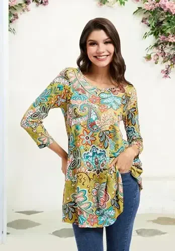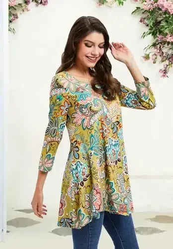 Refresh your wardrobe with ENMAIN Tunic Tops! These stylish and comfortable tunics are versatile pieces that women can choose for both daily use and special occasions. These blouses, which perfectly match leggings, stand out with their elegant designs and comfortable fabrics. Whether you create a casual combination or attend a special event, ENMAIN tunics always offer you a stylish and comfortable look. Available in round and V-neck options, 3/4 sleeve tunics create a timeless style icon. Thanks to its gently wrapping cut, it covers the abdomen and hip area in a pleasant way, creating a perfect silhouette. These tunics are an ideal choice especially for plus size women and are candidates to be an indispensable part of your wardrobe. ENMAIN tunics are not only stylish but also extremely comfortable. Thanks to its light and flexible fabric, it allows you to move comfortably throughout the day. These tunics, which keep you cool in summer and give a feeling of warmth in winter, can be worn in all seasons. Thanks to the quick-drying feature of the fabric, it is ready for use in a short time after washing. In addition, thanks to its flexible structure, it can be worn comfortably during pregnancy, making it a versatile option. Special details on the front of the tunics add a different atmosphere to the design. The fit and flare cut offers a feminine look with its fitted upper part and flared hem. Ruffled and curvy details add movement and elegance to the blouses, while the pattern options are also quite varied. Paisley, floral and other prints add a unique touch to these blouses and ensure you attract attention wherever you go. Whether you want a vibrant and colorful look or a more simple and elegant style, you will always be stylish with ENMAIN tunics. These tunics are a perfect choice for different situations and events. In addition to being ideal for daily wear, they can also be preferred during pregnancy, for teachers, on vacations, in the office, at meetings, shopping, parties, while playing sports, at outdoor events and to relax at home. It is a meaningful and stylish gift option that you can give to your loved ones on special days such as Valentine's Day, Christmas, Graduation, and Mother's Day. ENMAIN tunics are offered in a wide range that appeals to all ages and styles. The size range of ENMAIN tunics ranges from small to 3X. To choose the most suitable size for you, please carefully review the size chart and decide according to the measurements on the model. Remember, the right size selection ensures that the tunic fits you perfectly and gives you the best look. You will always feel stylish, comfortable and confident with ENMAIN tunics. Reflect your style with this indispensable piece of your wardrobe and make a difference in every environment!