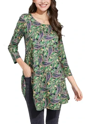 Meet this eye-catching piece from the ENMAIN Women's Top collection! This 3/4 sleeve, plus size tunic is the perfect choice to wear with leggings. Offering both a stylish and comfortable look, this blouse stands out with its loose fit and dynamic flared design. Available in sizes S-5XL, this t-shirt aims to fit every body type, making you feel special and comfortable. It is ideal for daily use, special occasions, or just when you want to relax.This model, which stands out among women's tunic tops, offers a timeless elegance with its classic crew neck and flared cut. Specially designed for plus size women, this t-shirt is also suitable for maternity wear and is long enough to cover the abdomen and hips. You can combine it with leggings to create a stylish look or create a comfortable style with your daily clothes. Thanks to its flexible fabric, it does not restrict your freedom of movement and provides comfort all day long.With its high quality and super soft fabric, this plus size women's outerwear will be indispensable for the summer months. With its flexible, light and breathable structure, it does not irritate your skin and provides comfort all day long. Decorated with boho-style floral patterns, this t-shirt reflects the energy of summer and is a candidate to be one of the most loved pieces of your wardrobe. Make your style speak with boho-style tunic tops, which are a must-have this summer!Ideal for women who want to capture casual elegance, these blouses go perfectly with leggings, black trousers and denim jackets. This boho-inspired women's clothing product, which you can also use for layered clothing in cool weather, can also be preferred as a cover-up on the beach or for summer casual wear. With its versatile use, it is a suitable option for all kinds of combinations.These fashionable basic tops, perfect for everyday wear, are the best gift for pregnancy, teaching, vacation, office work, dating, shopping, parties, sports, outdoor activities, home wear and Valentine's Day, Christmas, Graduation and Mother's Day. Thanks to its suitability for every situation, you can make your loved ones happy and give them a stylish surprise.Produced with ENMAIN quality, this tunic offers both elegance and comfort together. Always feel stylish and comfortable with this piece that will be indispensable in your wardrobe. This t-shirt, which offers long-lasting use with its fabric quality and stitching details, is a perfect option to reflect your style.