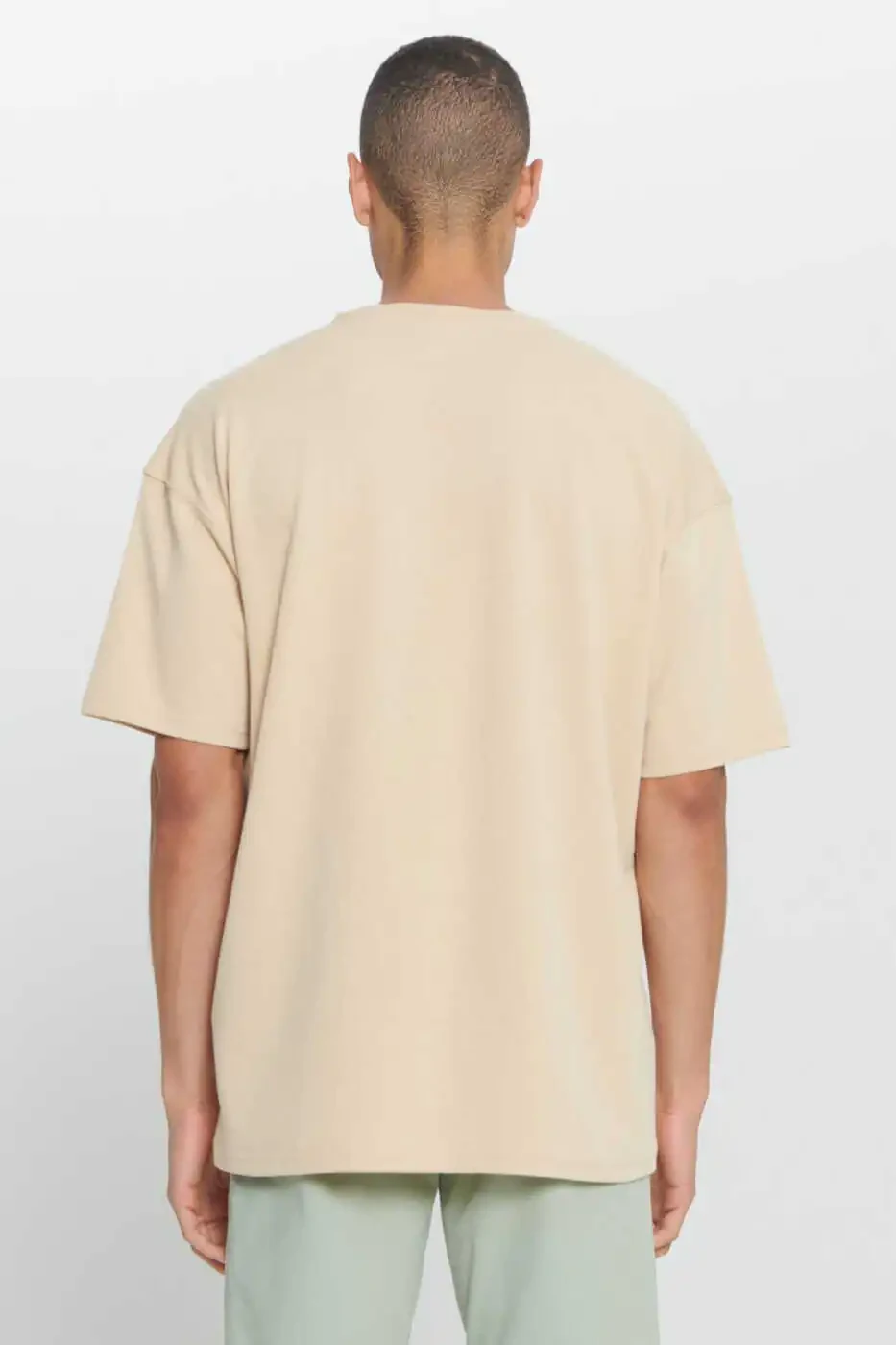 Erkak Bej Paxtalik Oversize Fit Keng Bichimli Velosiped Yoqali Qisqa Yengli Futbolka, %100 Paxta