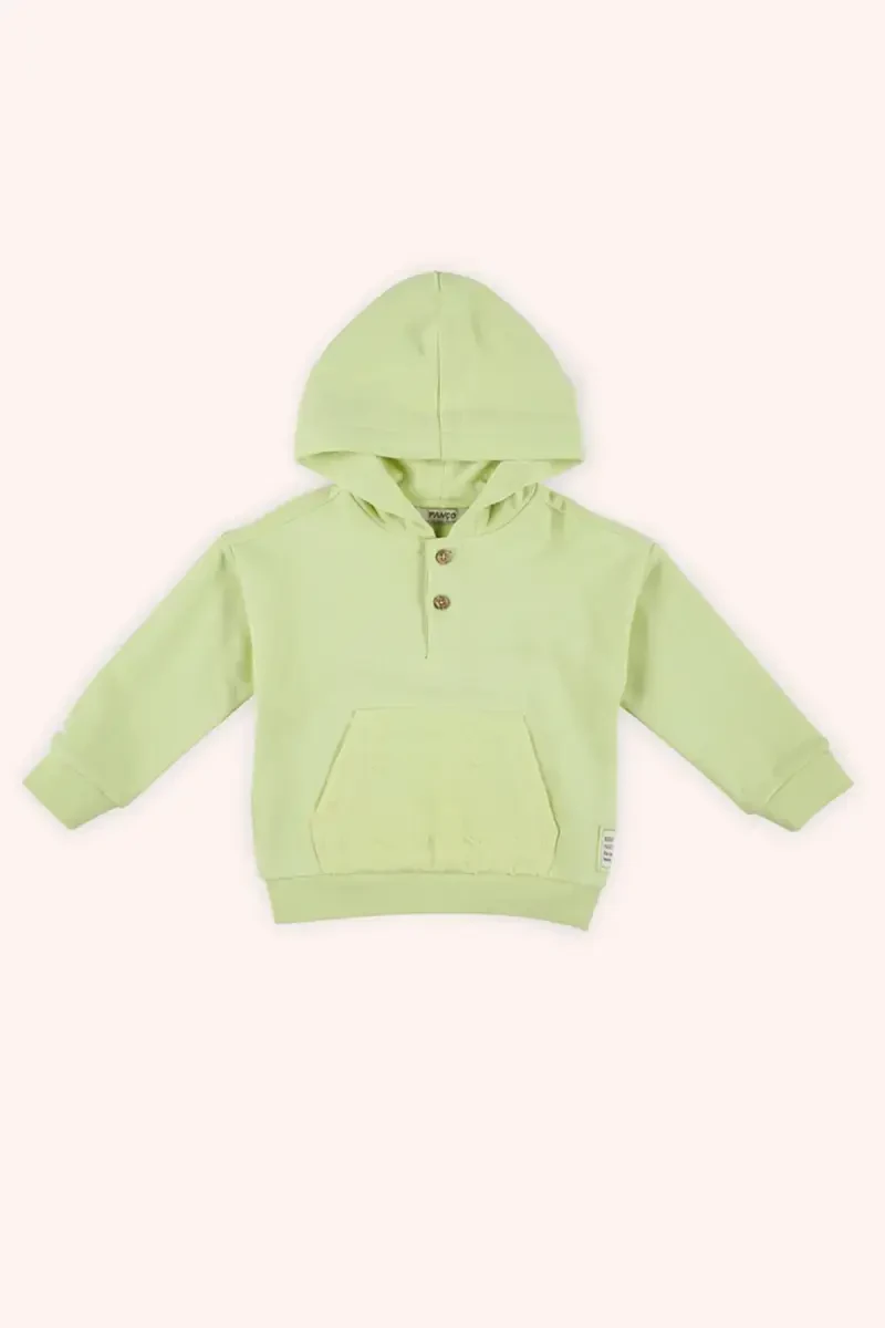 Bebek Kapüşonlu Yeşil Sweatshirt | Baskılı, Pamuklu, Kanguru Cepli