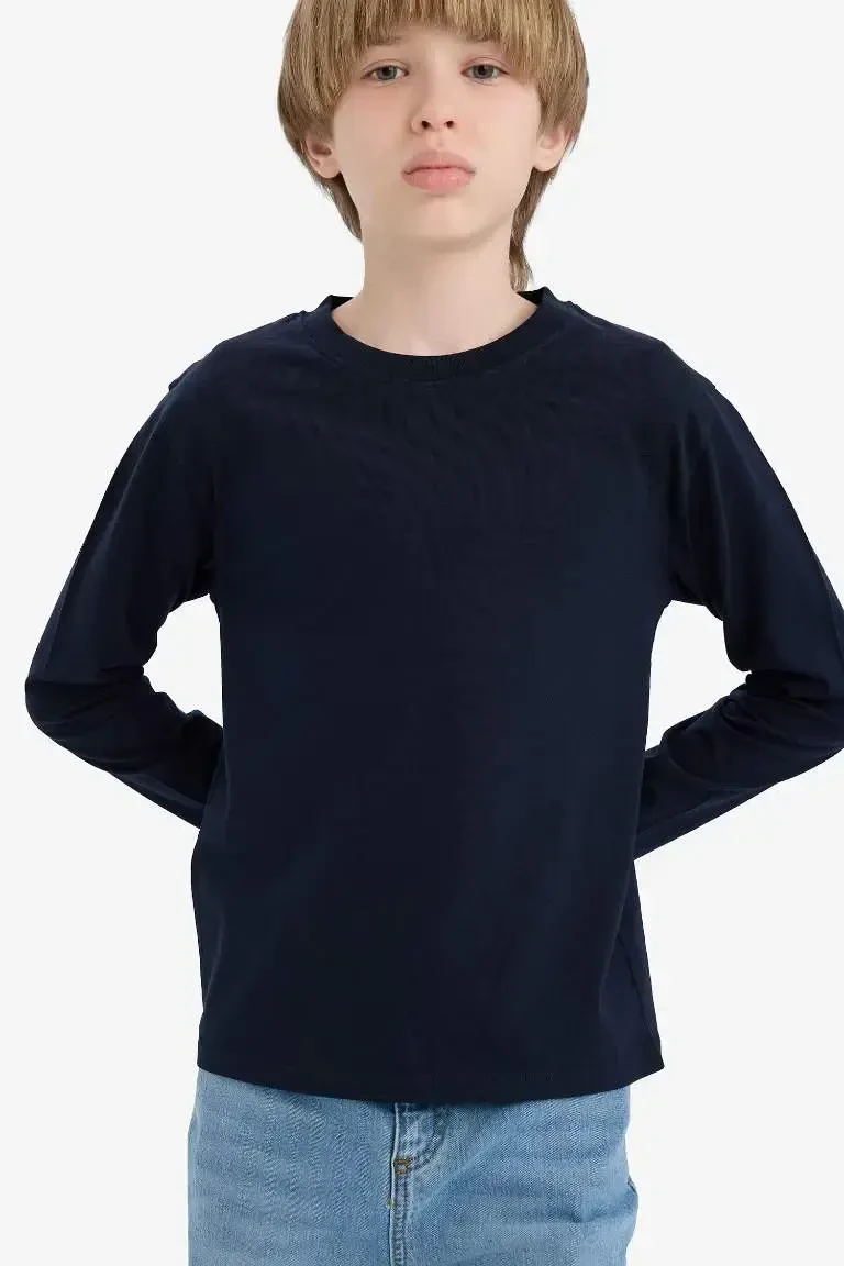 Erkak bolalar uchun to'q ko'k uzun yengli futbolka | Velosiped yoqali oddiy paxta