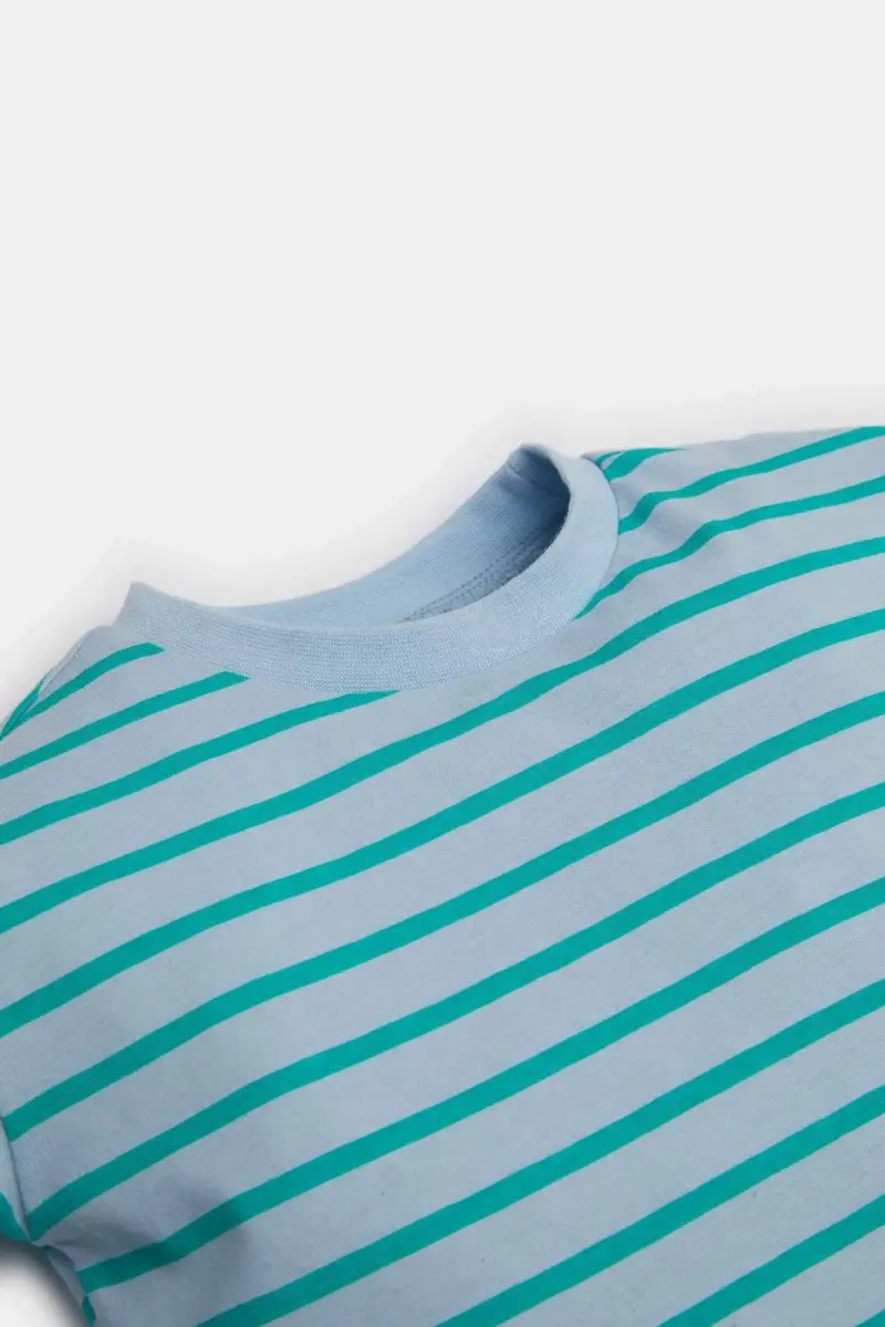 Erkak Bebek Chiziqli Futbolka | Paxtali, Qisqa Yengli, Moviy