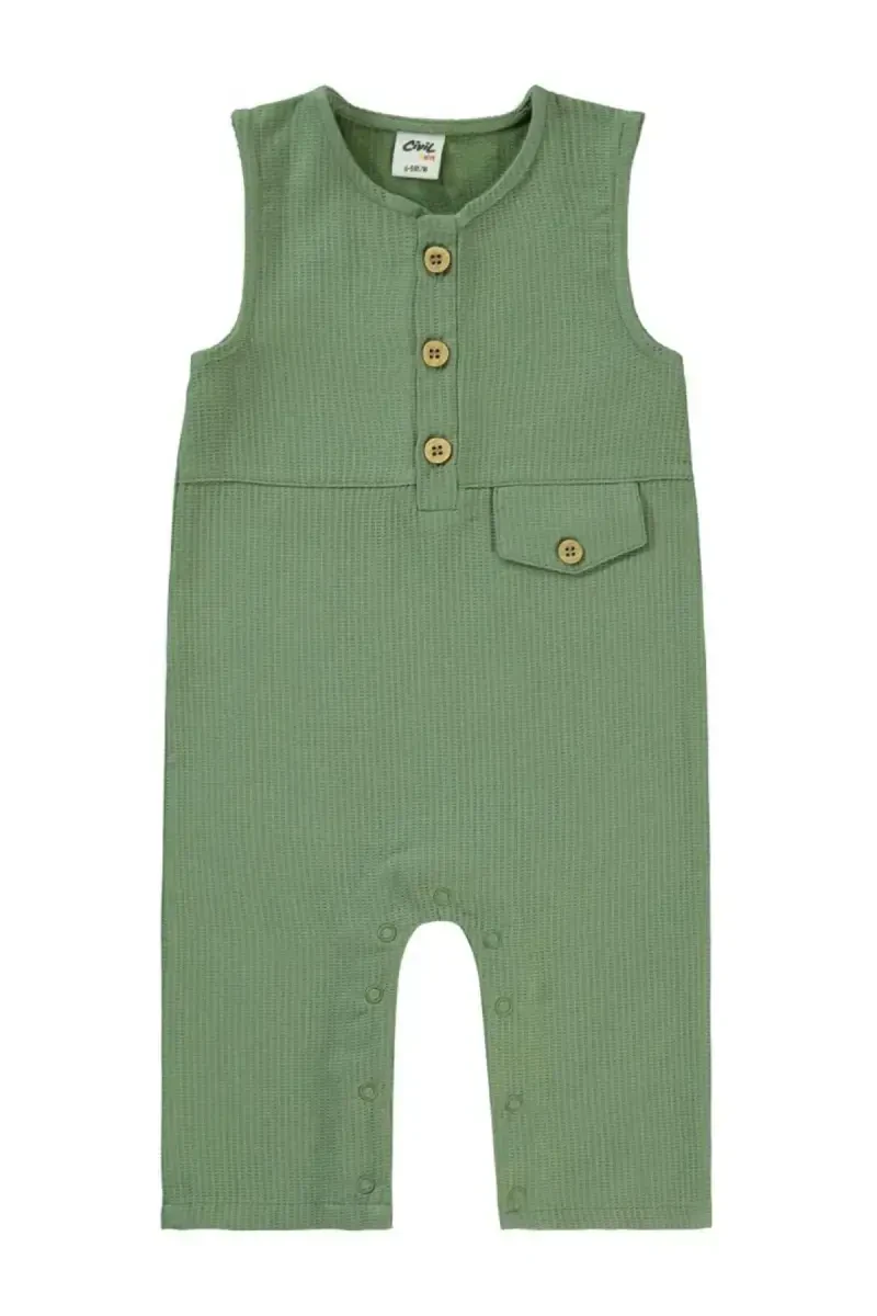 Minik maceracılar için tasarlanmış Erkek Bebek Slopet ile tanışın! 6 ila 18 aylık bebekler için özel olarak üretilmiş bu şık ve kullanışlı slopet, bebeğinizin hem rahat etmesini hem de tarz görünmesini sağlayacak. Koyu haki tonlarının hakim olduğu bu özel tasarım, bebeğinizin doğayla uyumlu, modern bir görünüme kavuşmasına yardımcı olur. Yüksek kaliteli pamuklu kumaşı sayesinde bebeğinizin hassas cildine nazikçe dokunur, tahriş ve alerji riskini en aza indirir. Pamuklu dokusu, bebeğinizin cildinin nefes almasına olanak tanır, böylece gün boyu terlemeden ve rahatsız olmadan oyun oynayabilir, keşifler yapabilir.Slopetin ayarlanabilir askıları, bebeğinizin büyüme hızına uyum sağlayarak uzun süreli kullanım imkanı sunar. Askıları kolayca ayarlayarak slopetin boyunu bebeğinizin ihtiyacına göre ayarlayabilirsiniz. Bu özellik, slopetin sürekli olarak yenilenmesine gerek kalmadan, bebeğinizin gelişimine ayak uydurmasını sağlar. Çıtçıtlı ağ kısmı ise alt değiştirme işlemlerini pratik ve hızlı bir şekilde gerçekleştirmenize olanak tanır. Alt değiştirme sırasında slopeti tamamen çıkarmak zorunda kalmadan, sadece çıtçıtları açarak bebeğinizin altını rahatça değiştirebilirsiniz. Bu özellik, özellikle dışarıda veya misafirlikteyken büyük kolaylık sağlar.Erkek Bebek Slopet, bebeğinizin hareket özgürlüğünü kısıtlamayan rahat bir kesime sahiptir. Bebeğiniz, slopet içinde özgürce hareket edebilir, emekleyebilir, oturabilir ve oynayabilir. Bu sayede, bebeğinizin motor becerilerinin gelişmesine ve dünyayı keşfetmesine yardımcı olur. Koyu haki renk tonları, slopete hem şık hem de sevimli bir hava katar. Bu renkler, diğer giysilerle kolayca kombinlenebilir ve bebeğinizin her zaman tarz görünmesini sağlar. İster tişörtle, ister body ile kombinleyin, slopet her zaman şık ve uyumlu bir görünüm sunar.Bu slopet, sadece şık ve kullanışlı olmakla kalmaz, aynı zamanda dayanıklı ve uzun ömürlüdür. Yüksek kaliteli malzemelerden üretilmiş olan slopet, defalarca yıkanmaya ve kullanıma dayanıklıdır. Renkleri solmaz, kumaşı deforme olmaz ve dikişleri atmaz. Bu sayede, slopeti uzun yıllar boyunca güvenle kullanabilirsiniz.Erkek Bebek Slopet, bebeğinizin gardırobunun vazgeçilmez bir parçası olmaya aday. Hem günlük kullanım için hem de özel günler için ideal olan bu slopet, bebeğinizin her zaman rahat ve şık görünmesini sağlar. Bebeğinizin konforunu ve tarzını ön planda tutan bu özel tasarımı kaçırmayın!