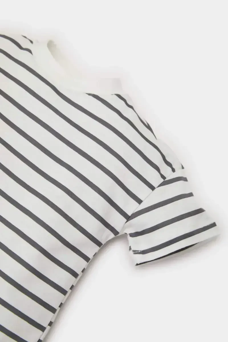Erkak bebeğiniz uchun mo'ljallangan Bisiklet Yaka Çizgili Kısa Kollu Tişört, ham şıklığı ham da konforu bir arada sunuyor. Ayniqsa issiq havolarda bebeğinizning rahat etmesi uchun ideal bo'lgan bu tişört, yumshoq dokusu va sevimli çizgili deseniyle gardırobunun vazgeçilmezi bo'ladi. MarkaMola sifati bilan sunulan bu tişört, bebeğinizning hassas cildine zarar bermaydigan %100 pamuklu kumaştan üretilmiştir. Bisiklet yakasi tufayli oson giydirilip chiqariladi, kısa kollu tasarımı esa bebeğinizning harakat erkinligini cheklamaydi. Çizgili deseni, bebeğinizning kiyimlariga eğlenceli bir havo qo'shadi, ekru rangi har qanday kombinatsiya bilan mos keladi. Kundalik foydalanish uchun mukammal bo'lgan bu tişört, o'yin parkida, sayrda yoki uyda bemalol tanlanishi mumkin. Bebeğinizning cildine do'st, sifatli va shık bir tişört qidirsangiz, Bisiklet Yaka Çizgili Kısa Kollu Tişört aynan siz uchun. Mahsulotning turli o'lchamdagi variantlari mavjud va ko'rsatilgan uzunlik o'lchamlariga e'tibor berib, bebeğiniz uchun eng mos o'lchamni tanlashingiz mumkin. Bu tişört, bebeğinizning ham rahat hamda sevimli ko'rinishini ta'minlaydi.