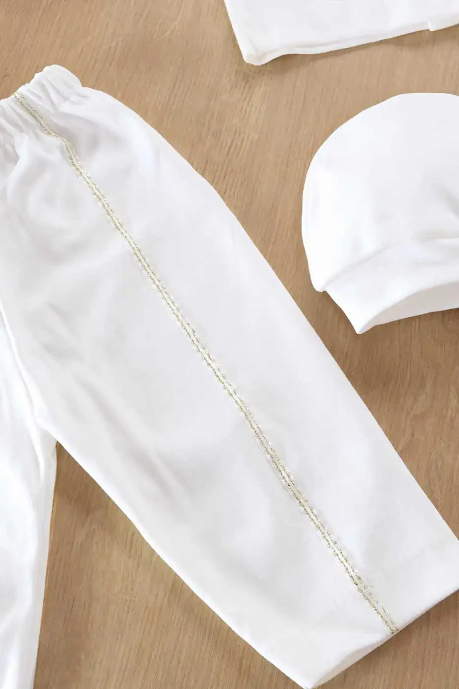 Кичкина шаҳзоданггиз учун энг муҳим кунларда чирой ва қулайликни бирлаштирувчи Болалар учун жилетли, галстукли мавлуд либослари тўплами Luxury Special Day and Maulud Set 0-3 ой STL6518 билан танишинг! Бу ажойиб тўплам чақалоғингизнинг мавлуди, суннат ёки бошқа муҳим кунларида кўзга ташланувчи кўринишга эга бўлишини таъминлайди ва шу билан бирга унинг нозик терисига ҳам эътибор беради. Юмшоқ, нафас олувчи ва тўлиқ антиаллергик матодан тайёрланган бу тўплам чақалоғингизнинг кун бўйи бемалол бўлишини кафолатлайди. Нафис тафсилотлари билан эътиборни жалб қилувчи жилет, галстук ва шляпа тўпламнинг чиройини тўлдиради, пахта кўйлак ва шим эса қулайликни биринчи ўринга қўяди. Пашша ва қўлқоплар билан тўлдирилган тўплам чақалоғингизни совуқдан ҳимоя қилади, шу билан бирга чиройли ва илиқ бўлишини таъминлайди. Туркияда ишлаб чиқарилган бу люкс тўплам 100% антиаллергик хусусияти билан энг нозик терилар учун ҳам мос келади. Канцероген моддаларсиз, терлатмайдиган тузилиши туфайли чақалоғингиз кун бўйи бахтли ва бемалол бўлади. Мосланувчан тузилиши туфайли чақалоғингизнинг бемалол ҳаракатланишини таъминлайдиган бу тўплам узоқ муддатли фойдаланиш учун ҳам идеалдир. Сифатли матоси туфайли чўзилмайди ва ҳар ювилганда аввалгидек қолади. Чақалоғингизнинг нозик терисини ҳисобга олган ҳолда энг сифатли ва хавфсиз материаллардан фойдаланиб, эътибор билан ишлаб чиқарилади. Бу махсус тўплам чақалоғингизга ва сизга хотиржамлик бахш этади. Сиз ҳам кичкина фарзандингизнинг энг муҳим онларини бу ажойиб тўплам билан абадийлаштиринг!