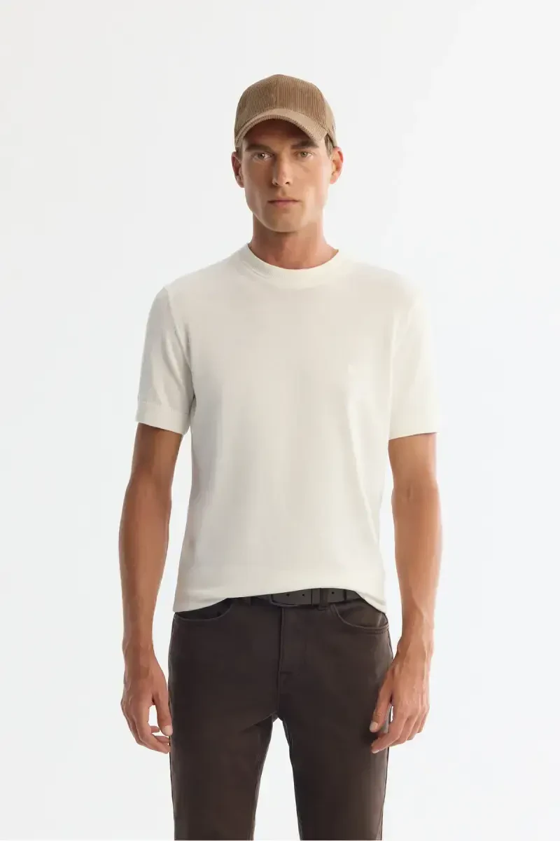 AVVA Erkaklar Ekru Yarim Balıkçı Yaka Qisqa Yengli Triko Futbolka B005025-Ekru, nafislik va qulaylikni birlashtirgan maxsus dizaynga ega. Ushbu triko futbolka yarim balıkçı yaka detali bilan zamonaviy ko'rinish taqdim etadi, yumshoq matosi esa kun bo'yi qulay foydalanish imkonini beradi. Qisqa yengli dizayni, ayniqsa mavsumiy o'tishlarda va yoz oylarida afzal ko'rishingiz mumkin bo'lgan ideal variantdir. Yaka, yeng va etak qismidagi rib to'qima detallari futbolkaning umumiy dizayniga nafislik qo'shadi, ko'krakdagi branding kashtasi esa brendning sifati va o'ziga xosligini ta'kidlaydi. Regular fit standart kesimi har qanday tana tuzilishiga mos keladi va nafis va qulay siluet yaratadi. 70% viskoza va 30% neylon aralashmasi matosi ham chidamlilik, ham qulaylikni ta'minlaydi. Studiya suratga olish jarayonida ranglar yorug'lik farqi tufayli o'zgarishi mumkin, shuning uchun mahsulotning haqiqiy rangi ekrandagi tasvirdan biroz farq qilishi mumkin. Modelning bo'yi 189 sm, ko'kragi 102 sm, beli 83 sm va soni 100 sm, ustidagi namunaviy o'lcham M. Ushbu triko futbolka kundalik foydalanishdan tashqari, yanada maxsus daqiqalarda ham uslubingizni to'ldiradigan ko'p qirrali buyumdir. AVVA sifati bilan ishlab chiqarilgan ushbu triko futbolka garderobingizning ajralmas qismiga aylanishga nomzod. Ham nafis, ham qulay bo'lishni istagan erkaklar uchun ajoyib tanlovdir. Kombinatsiyalash oson tuzilishi tufayli turli xil uslublarga moslashadi va har qanday muhitda e'tiborni tortadi.