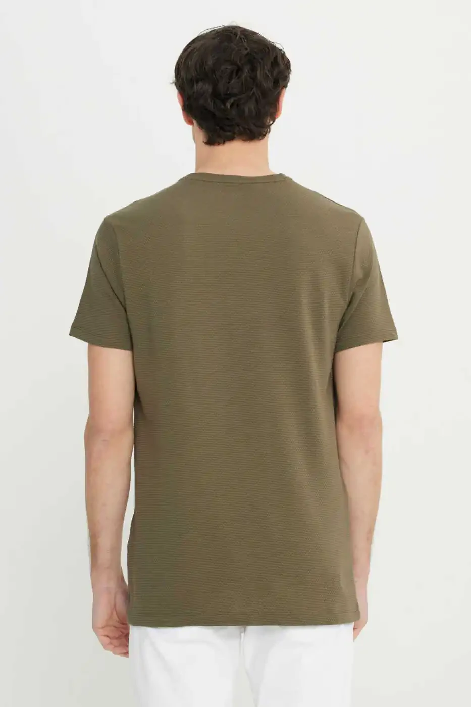 Замонавийлик ва қулайликни ўзида мужассам этган эркак кишилар учун ҳаки рангли пахтадан тикилган Slim Fit тор кесимли футболка, гардеробингизнинг ажралмас қисми бўлишга тайёр! Замонавий ва нафис дизайни билан эътиборни жалб қилувчи бу футболка юқори сифатли пахта матосидан тайёрланган. Нафас олувчи тузилиши билан кун бўйи қулайликни таъминлайди, Slim Fit кесими эса баданингизга мукаммал мос тушади ва замонавий кўриниш беради. Ҳаки ранги ҳар қандай комбинация билан мос келиб, сизнинг услубингизни тўлдиришга ёрдам беради. Иш суҳбатларидан кундалик фаолиятларгача, дўстлар билан учрашувлардан кечки овқатларгача ҳар қандай вазиятда ўзингизни ишончли ва замонавий ҳис этишингизни таъминлайди. Юмшоқ тузилиши билан терингизга мулойимлик билан тегадиган бу футболка ювилгандан кейин ҳам шакли ва рангини сақлаб, кўп йиллар давомида фойдаланиш мумкин бўлган сифатни тақдим этади. Минималист дизайни билан замонавий замонавийликни тақдим этувчи бу футболка замонавийлик ва қулайликни бир вақтда изловчи эркаклар учун идеал танловдир. Сифатли материал ва аниқ ишлов бериш билан яратилган бу махсус дизайнли футболка билан услубингизни намойиш этинг ва ўзингизни алоҳида ҳис этинг. Ўзаро фарқ қилувчи ранг вариантлари билан кенг ассортиментни тақдим этувчи маҳсулотимиз ҳар қандай завқ ва услубга мос келишни мақсад қилган. Бу мавсумнинг тренд рангларидан бири бўлган ҳаки ранги кўп йиллар давомида ўз замонавийлигини сақлаб қолади ва гардеробингизнинг асосий қисми бўлади. Фақат қулайлик эмас, балки услуб ва сифатни ҳам изловчилар учун мукаммал танлов бўлган бу футболка билан ўз услубингизни акс эттиринг.