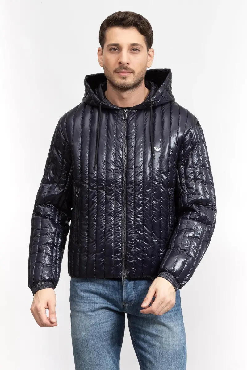 %100 Polyester. Fermuarli cho'ntaklar. Kapushonli. Brend detallari bilan. Shishirilgan kurtka.