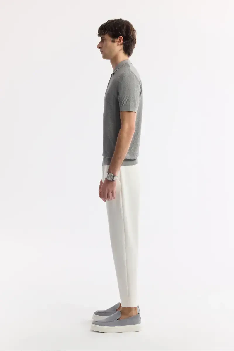 Kulrang Fakturali Erkaklar Polo Trikotaj Futbolka | Regular Fit Qulay Nafosat