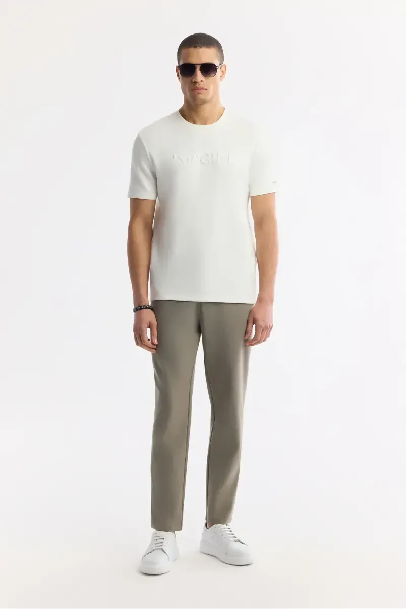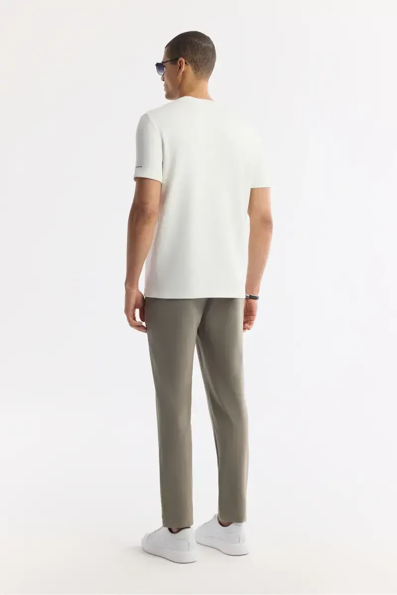 %100 Paxta, Velosiped Yoqasi, Bosmali, Qisqa Yeng, Slim Fit