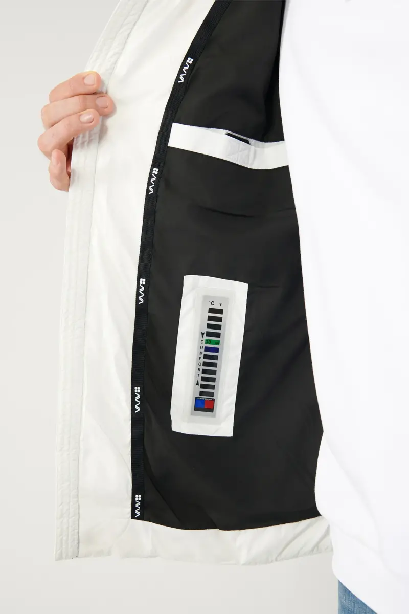 Erkak oq g'oz patli kurtka | Suv o'tkazmaydigan, shamol o'tkazmaydigan, kapushonli va termometrli shishirilgan kurtka