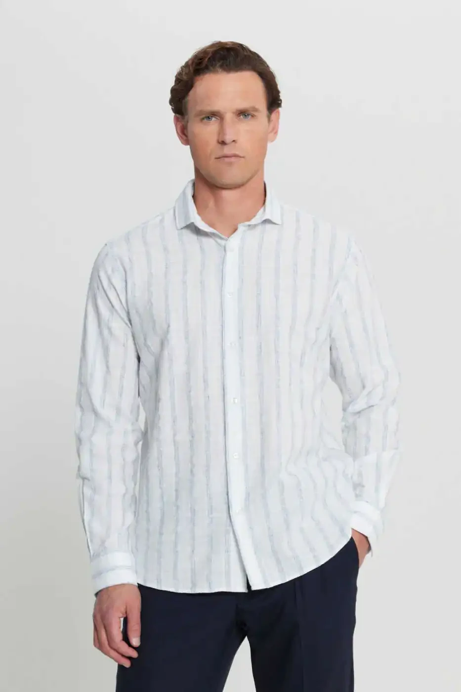 Erkaklar oq-ko'k paxta zig'ir Comfort Fit qulay ko'ylagi bilan yozdan zavqlaning! Ushbu ko'ylak issiq havoda nafisligidan voz kechishni istamaydigan erkaklar uchun ideal tanlovdir. Paxta va zig'ir aralashmasidan tayyorlangan maxsus mato teringizga nafas berib, kun bo'yi qulaylikni ta'minlaydi. Terlamaydigan tuzilishi tufayli, ayniqsa, issiq va nam havoda bemalol foydalanishingiz mumkin. Comfort fit bichimi tanaga o'tiradigan, ammo harakat erkinligini cheklamaydigan siluetni taqdim etadi. Klassik ko'ylaklardan farqli o'laroq, bu model ko'proq qulay va beparvo ko'rinishni istaganlar uchun mo'ljallangan. Ko'ylakning oq asosiy rangi ko'k detallar bilan jonlantirilib, zamonaviy va dinamik muhit yaratadi. Ushbu rang kombinatsiyasi turli xil uslublarga moslashib, ko'p qirrali foydalanish imkoniyatini taqdim etadi. Ko'ylakni shortilar, jinsi shimlar yoki zig'ir shimlar bilan birlashtirib, turli muhitlarga moslasha olasiz. Kundalik foydalanish uchun sport poyafzallari yoki sandallar bilan to'ldirishingiz mumkin bo'lgani kabi, maxsus tadbir uchun zamonaviy shim va poyafzallar bilan ham foydalanishingiz mumkin. Ko'ylakning tugmalari sifatli materialdan tayyorlangan bo'lib, osongina ochilib yopiladi. Tikuv detallariga e'tibor qaratilgan, bardoshli va uzoq umr ko'rishni ta'minlaydi. Ko'ylakning yeng uzunligi issiq havoda qulay bo'lishingiz uchun ideal uzunlikda. Agar xohlasangiz, yenglaringizni o'rab, ko'proq sport ko'rinishiga ega bo'lishingiz mumkin. Oq-ko'k rang kombinatsiyasi ko'ylakni boshqa kiyimlaringiz bilan osongina birlashtirishga imkon beradi. Xoh jonli ranglar, xoh neytral tonlar bilan birlashtirib, o'z uslubingizni aks ettirishingiz mumkin. Ushbu ko'ylak sizning garderobingizning ajralmas qismiga aylanadi va har fasl sizning nafisligingizni to'ldiradi. Mato sifati, bichimining qulayligi va ranglarining uyg'unligi bilan bu ko'ylak ham kundalik foydalanishda, ham maxsus lahzalarda sizga hamroh bo'ladi. Nafisligingiz va qulayligingizni birlashtirgan ushbu ko'ylak uslubga ega erkaklarning tanlovi bo'lishga nomzod. Yozning energiyasini aks ettiruvchi ushbu ko'ylak bilan har qanday muhitda e'tiborni o'zingizga tortishingiz mumkin. Garderobingizni yangilash va uslubingizga yangi nafas olib kirish uchun ushbu ko'ylak ajoyib tanlov bo'ladi.