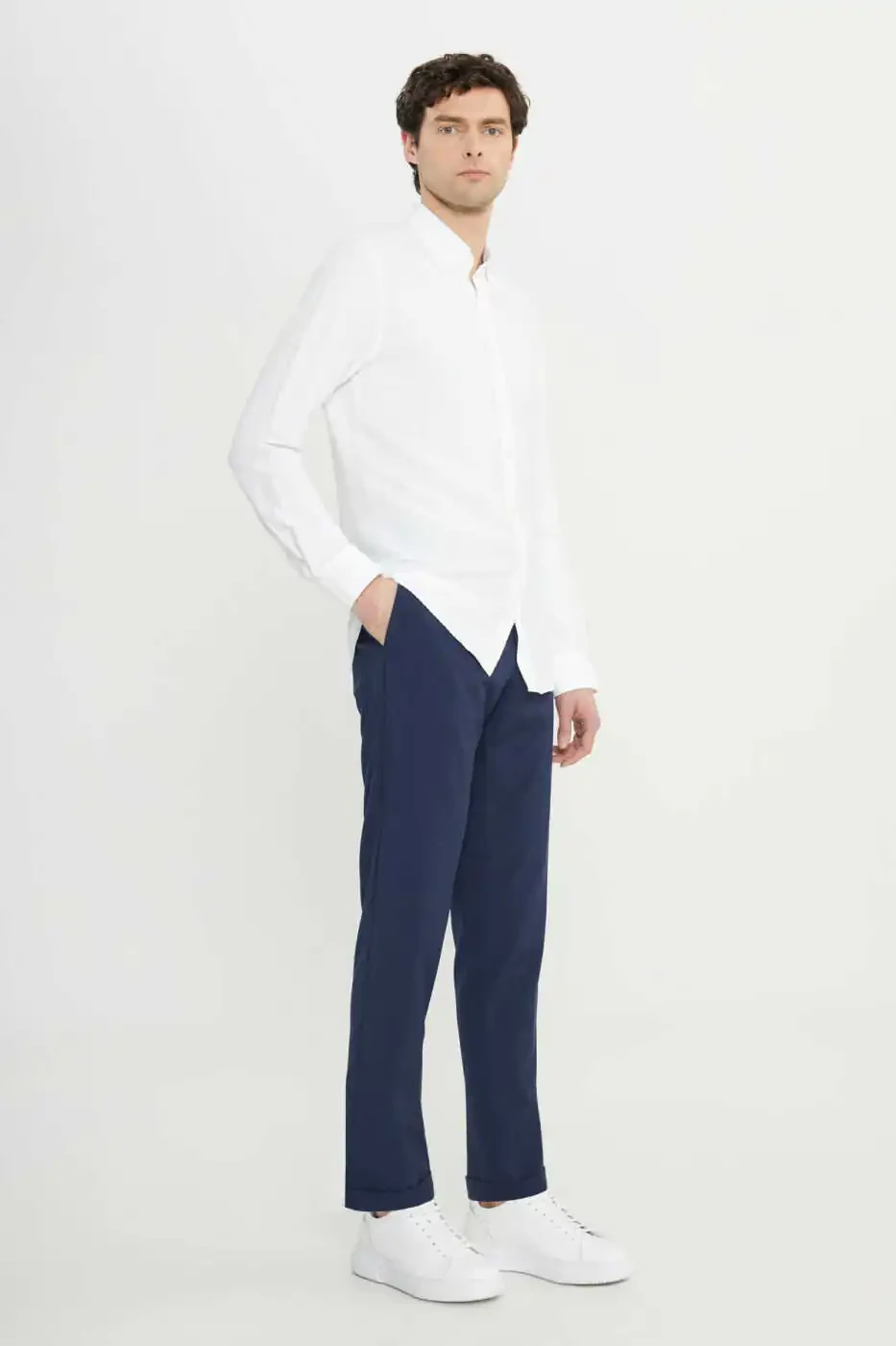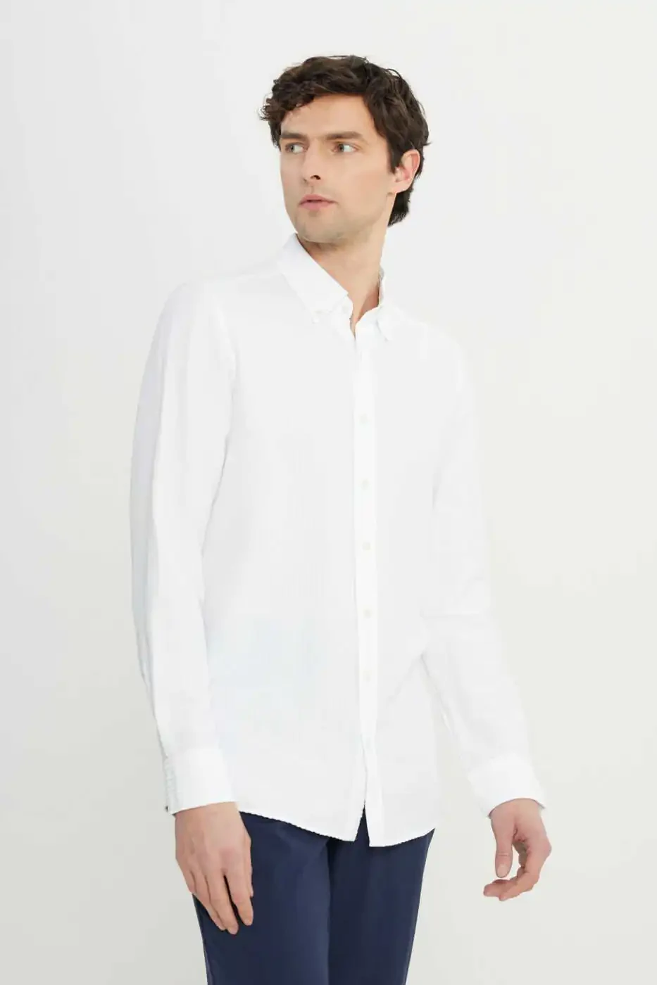 Oq ko'ylak, slim fit ko'ylak, tor bichimli ko'ylak, tugmali yoqali ko'ylak, armürli ko'ylak, erkaklar ko'ylagi, chiroyli ko'ylak, zamonaviy ko'ylak, qulay ko'ylak, oq slim fit ko'ylak