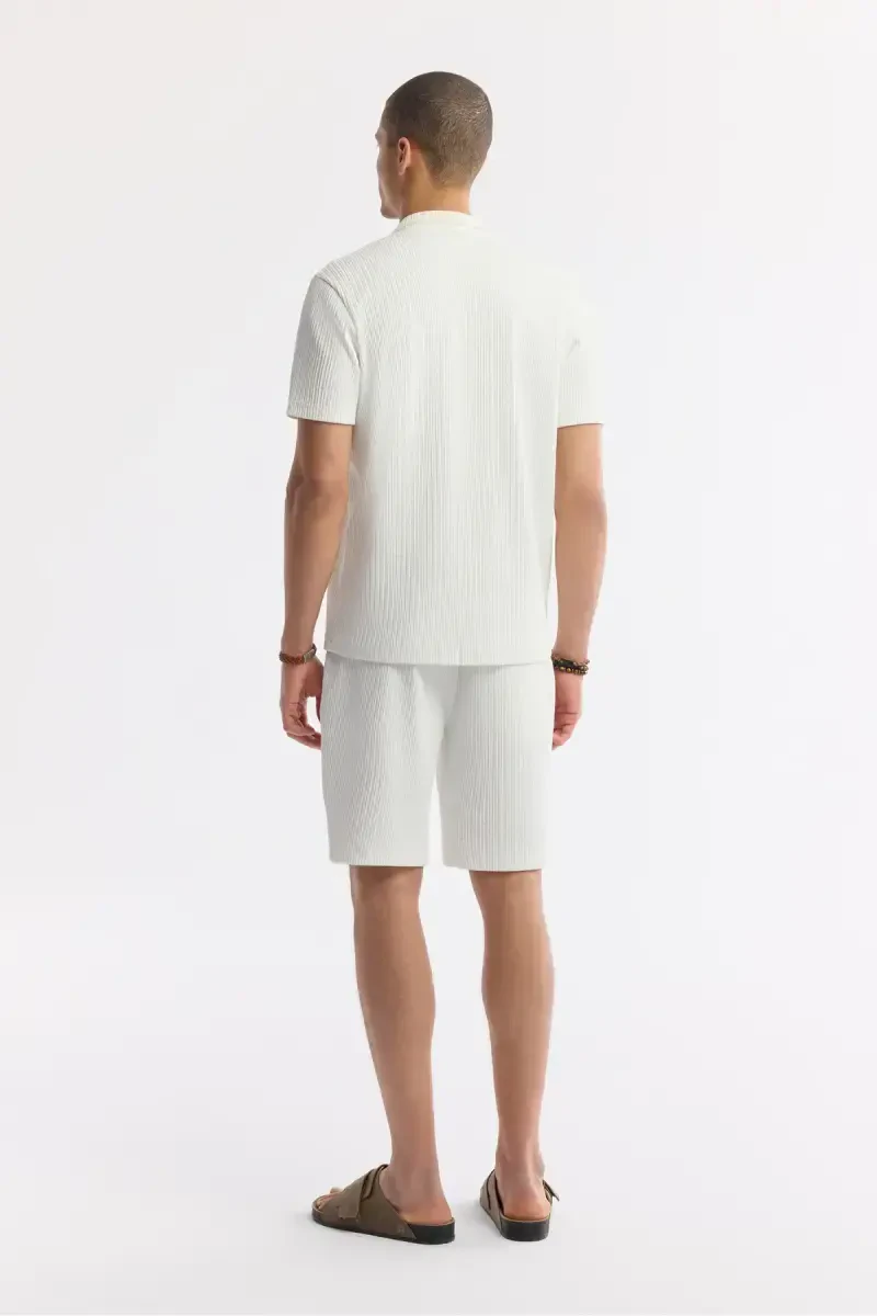 Erkak ko'ylak, ekru ko'ylak, regular fit, jakardli ko'ylak, apaj yoqa, qisqa yeng, paxta ko'ylak, yozgi ko'ylak, chiroyli ko'ylak, zamonaviy ko'ylak
