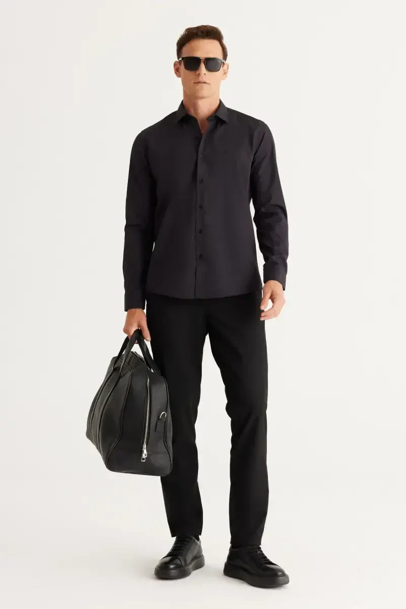 Erkak ko'ylak, qora ko'ylak, dazmollash oson ko'ylak, non-iron ko'ylak, slim fit ko'ylak, tor bichimli ko'ylak, paxta ko'ylak, klassik yoqali ko'ylak, ajin tushmaydigan ko'ylak, erkaklar kiyimi