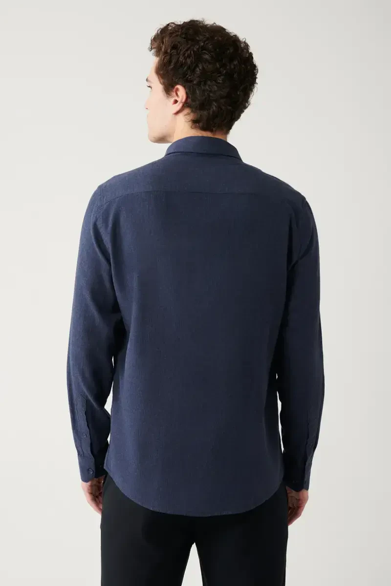 Ko'k rangli erkaklar uchun Regular Fit Oxford Brent tugmali yoqali uzun yengli ko'ylak - 94842
