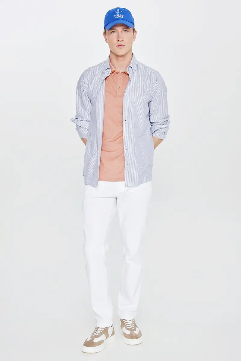 Erkak futbolka, polo yoqali, regular fit, paxtali, cho'kmaydigan futbolka, g'isht bej, cho'ntakli futbolka, Altinyildiz Classics, yozgi kolleksiya, qulay kesim