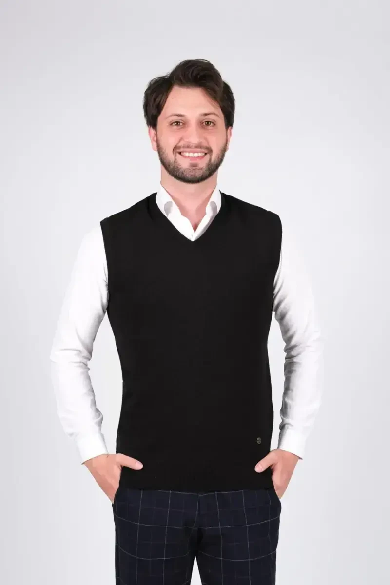 Erkaklar uchun V bo'yinli erkin kesimli paxta trikotaj sviteri Antrasit 22sm214