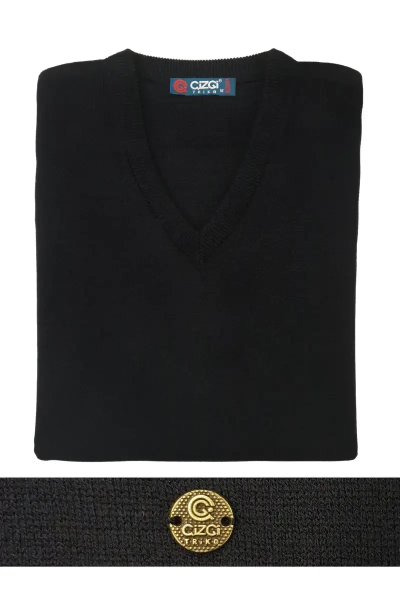 Erkaklar uchun po'lat to'qish Interlock qishki qalin trikotaj V bo'yinli trikotaj to'qish mo'ynali bo'lmagan dad sviteri katta hajmli