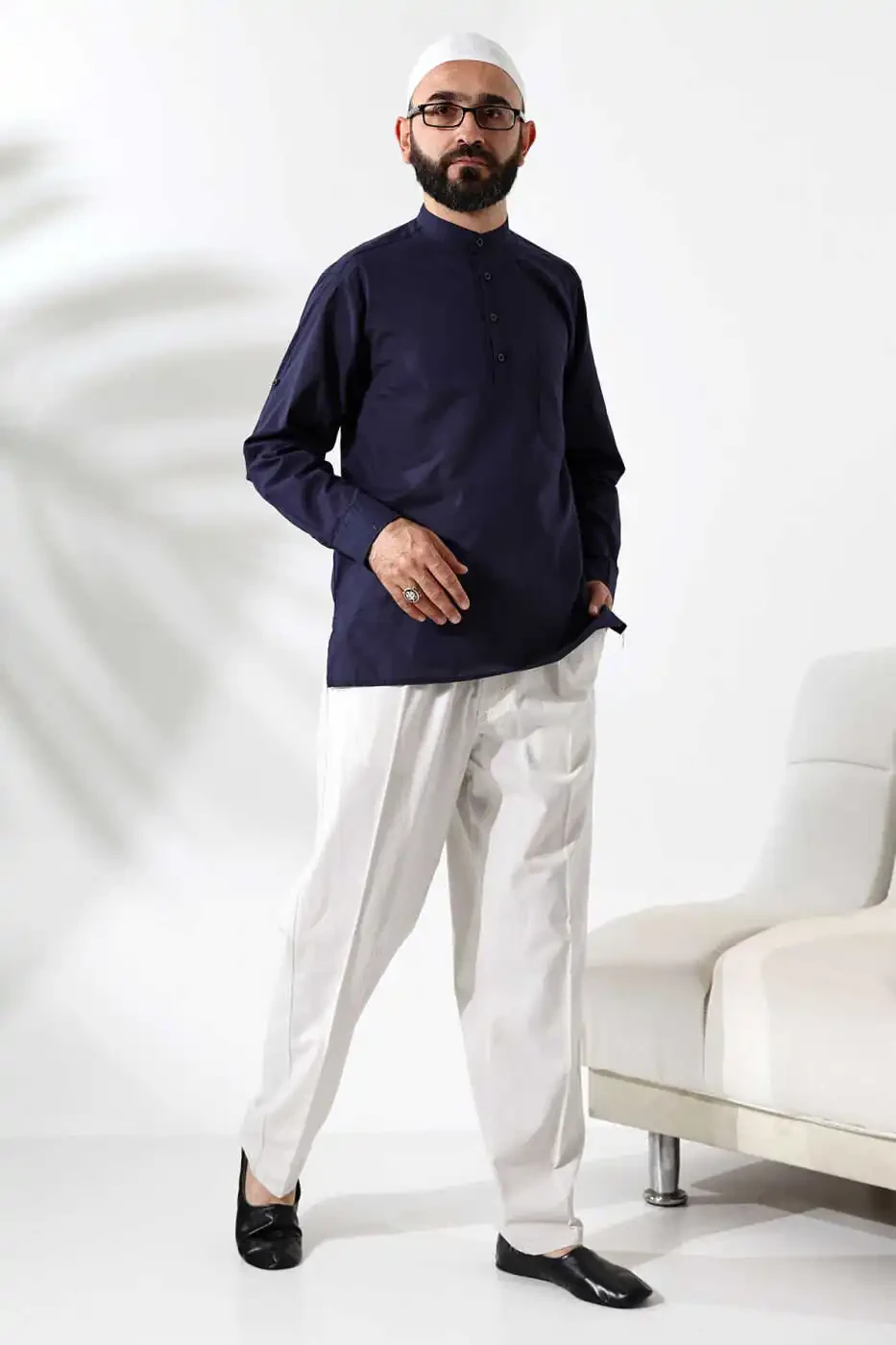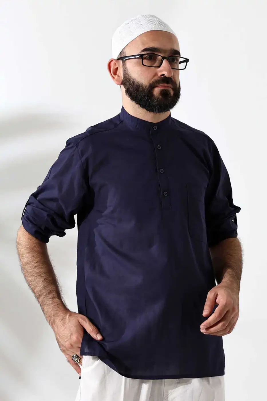 Erkaklar uchun 100% Paxta Vual Keng K kesim Yoqasiz Yarim Patli To'q ko'k Hajj Umra Ko'ylagi kundalik foydalanish uchun juda mos keladi. Uning keng kesimi va yoqasiz dizayni bilan u sizga qulaylikni ta'minlaydi. Nafas oladigan 100% paxta Vual to'qilgan matosidan tayyorlanganligi tufayli u butun kun davomida sizning teringizni salqin tutadi. Uning uzun yengi va cho'ntaklari uni amaliy qiladi, va tekis naqshi va to'q ko'k rangi uni boshqa garderob buyumlari bilan osonlik bilan birlashtirish imkonini beradi. Keng kesim naqshi sizga erkin harakat qilish erkinligini beradi, Vual to'qilgan turiga esa uning yengilligi qulaylikni oshiradi. Tugmali yopilish shakli uni oson kiyish va echish imkonini beradi, va bu sizning vaqtingizni tejaydi. Uzoq muddatli foydalanish uchun uni 30 darajali yuvish bo'yicha ko'rsatmalarga muvofiq tozalash tavsiya etiladi.