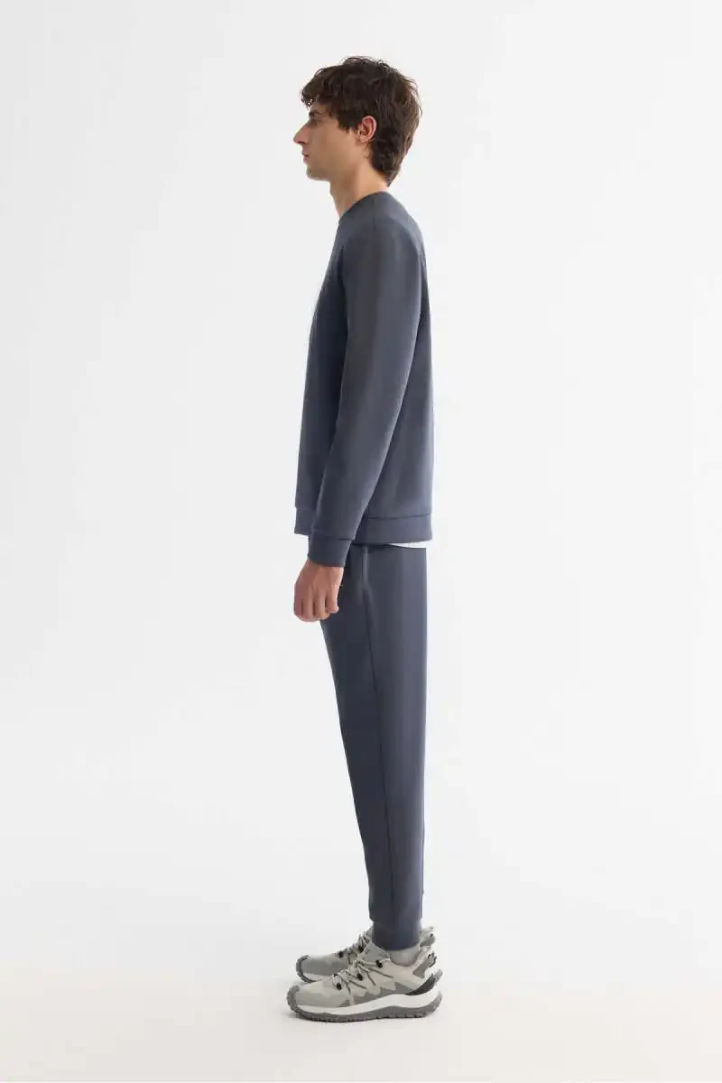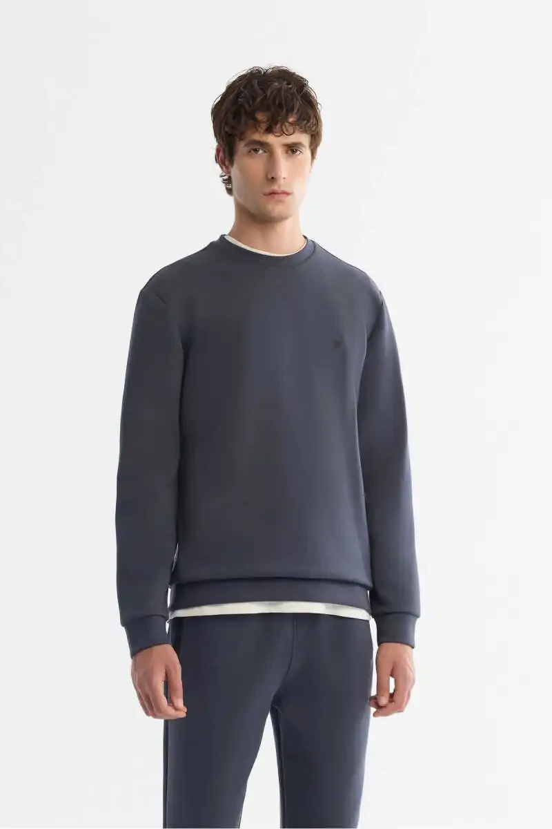 Erkaklar uchun Antrasit Rangli Sweatshirt - Dumaloq Yoqa - Elastik Yumshoq To'qima - Regular Fit