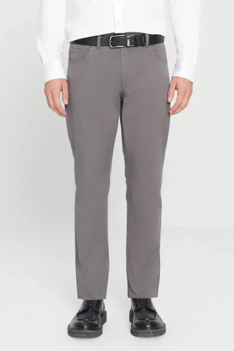 Erkaklar uchun antrasit rangli Slim Fit tor kesilgan 5 cho'ntakli paxta kanvas cho'ziluvchan chino shimlari