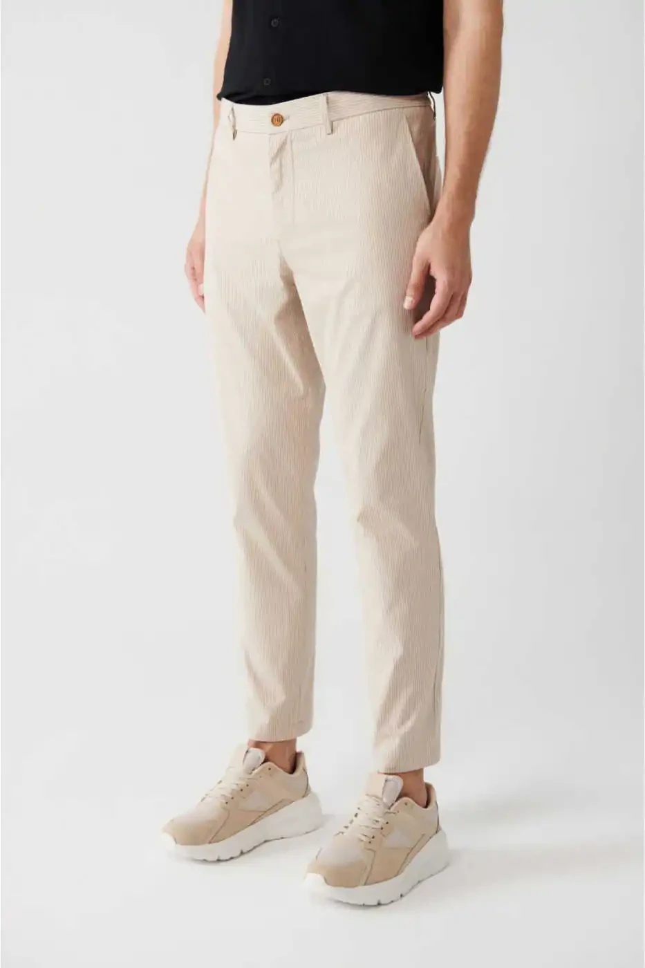 erkaklar shimi, bej shim, elastik belbog'li shim, shnuri bor shim, chiziqli shim, bo'shashgan kesimli shim, kundalik shim, A31y3206