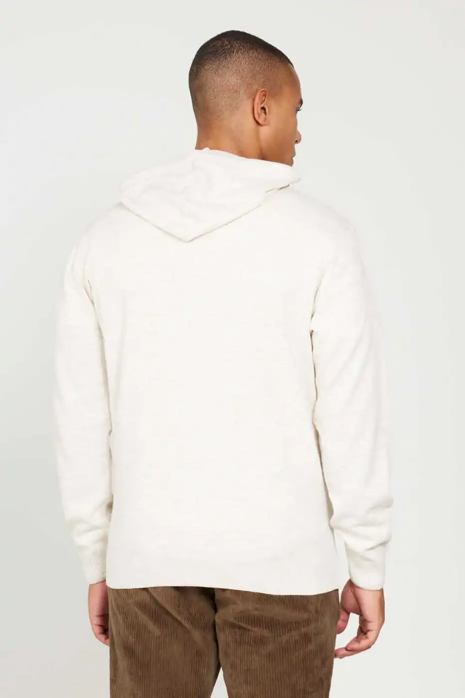 Erkaklar uchun bej rangli standart o'lchamli oddiy kesilgan kaputli paxta trikotaj ko'ylagi