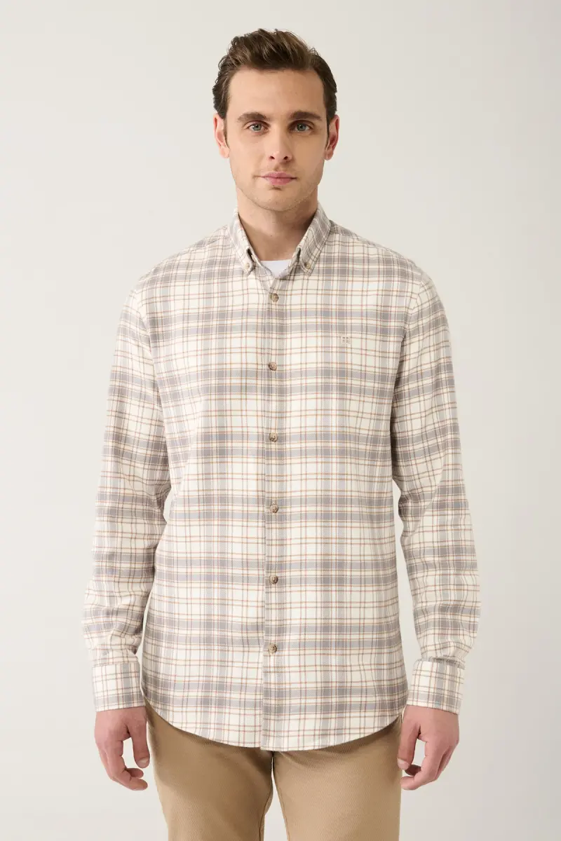 erkaklar ko'ylagi, bej ko'ylak, paxta ko'ylak, ekoseli ko'ylak, regular fit ko'ylak, tugmali yoqa ko'ylak, A32y2150