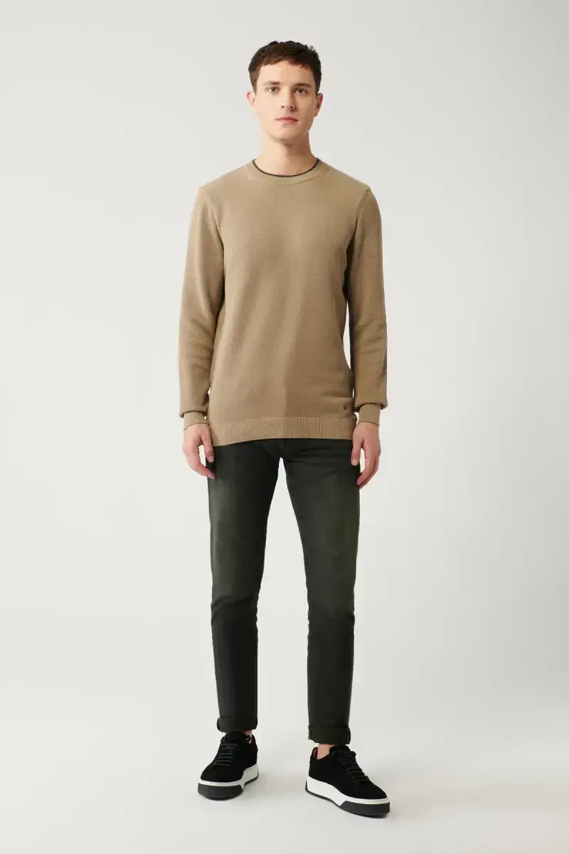 Stil va qulaylikni birlashtirib, Erkaklar uchun bej trikotaj sviter kundalik kiyimlaringizga o'ziga xos nafislik baxsh etish uchun ideal tanlovdir. Yumshoq to'qimasi va ikki qavatli yoqasi bilan iliq va zamonaviy ko'rinishni taqdim etadi. Regular Fit kesimi sizning tanangizga mukammal tarzda mos keladi va kiyishda qulaylikni ta'minlaydi.