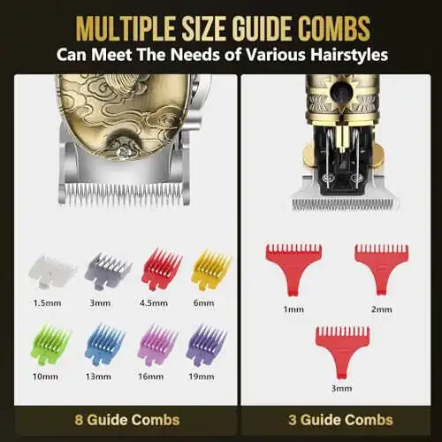 - Тўлиқ металл корпус дизайни: Корпуси тўлиқ мустаҳкам ва янги салқин гравировкали металдан ясалган, нозик ва қулай ушлаш имконини беради. Тутақчадаги сирпанмас рыцарлик нақши эргономик равишда ишлаб чиқилган, қулай ушлашни таъминлайди ва билак ва қўл чарчоғини камайтиришга ёрдам беради. Ягона тугмачали дизайн ҳам янги бошланувчилар, ҳам профессионал сартарошлар учун фойдаланишни осонлаштиради.