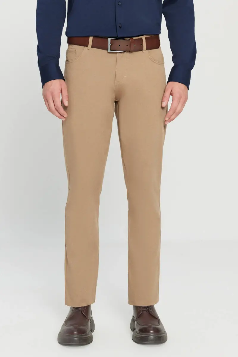 Stil va qulaylikni birlashtirgan erkaklar uchun jimjiy rangli ingichka o‘rindiqli, 5 cho‘ntakli, paxta kanvasdan tikilgan elastik chino shimlari, shkafingizning ajralmas qismi bo‘ladi. Yumshoq va nafas oladigan paxta kanvas matodan tikilgan shim, qulay foydalanish imkonini beradi. Elastik tuzilishi harakat erkinligini ta’minlaydi va siz uni kun bo‘yi qulaylik bilan kiyishingiz mumkin. Ingichka o‘rindiq kesim sizning tanangizga mukammal mos keladi va sizga zamonaviy ko‘rinish yaratishga yordam beradi. 5 cho‘ntakli dizayni amaliylikni ta’minlaydi va kichik narsalarni xavfsiz saqlash imkonini beradi. Jimjiy rangi har qanday uslubga mos keladi, sizga turli xil kombinatsiyalar yaratish imkonini beradi. Kundalik hayotda, biznesda yoki maxsus kunlarda zamonaviy va qulay ko‘rinishga ega bo‘lish uchun ideal tanlovdir.