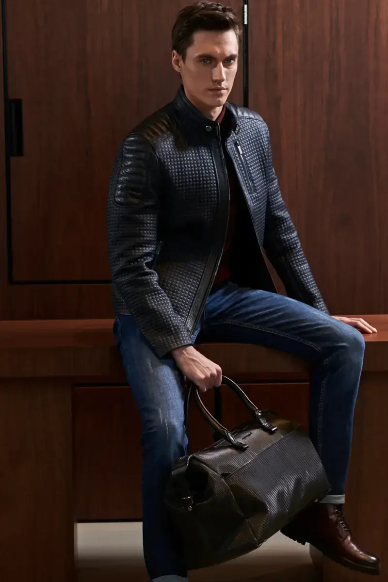 Erkaklar uchun charm kurtka kombinatsiyalari: