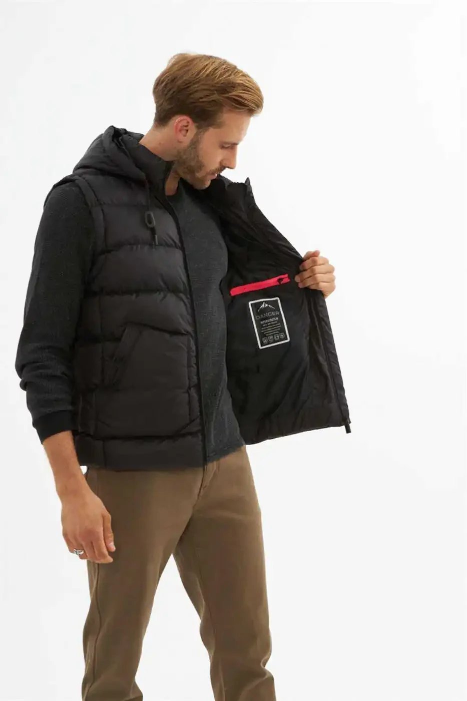 Erkaklar uchun chiqariladigan kaputli cho'ntakli tafsilotli yelekli pushti ko'ylagi qora kundalik hayotda, sayohatlarda, piyoda yurishda yoki sport faoliyatida foydalanish uchun ajoyib tanlovdir. Sovuq havoda zamonaviy va iliq bo'lish uchun ideal tanlovdir.