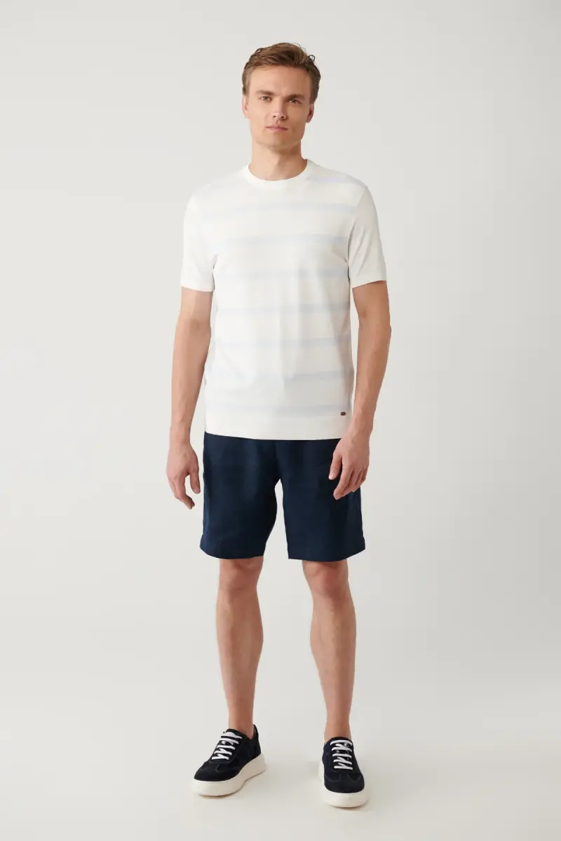 Uslub va qulaylikni birlashtirgan bu erkaklar uchun ekru rangli triko futbolkasi, shkafingizning ajralmas qismi bo'lishga tayyor. Krujka bo'yin va rayon matolari kundalik hayotda qulaylik yaratadi, chiziqli dizayni esa sizning uslubingizni aks ettiradi.