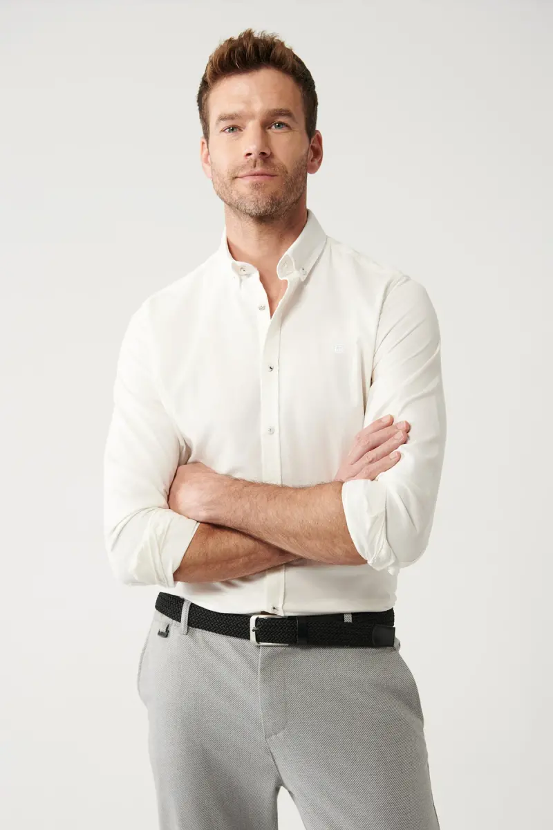 Regular Fit kesimi bilan tanaga mukammal mos keladigan ekru rangli unisex ko'ylak, harakat erkinligini ta'minlaydi. Ekru rangi barcha kombinatsiyalaringizda uslubli va zamonaviy ko'rinishga ega bo'lishingizni ta'minlaydi.