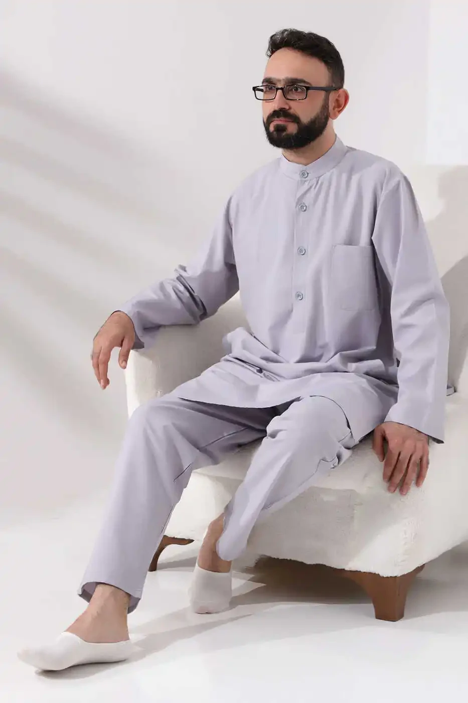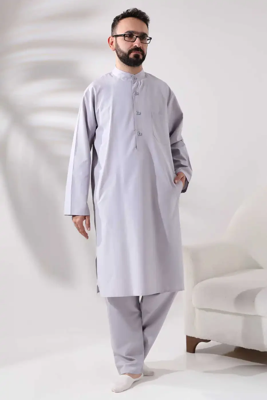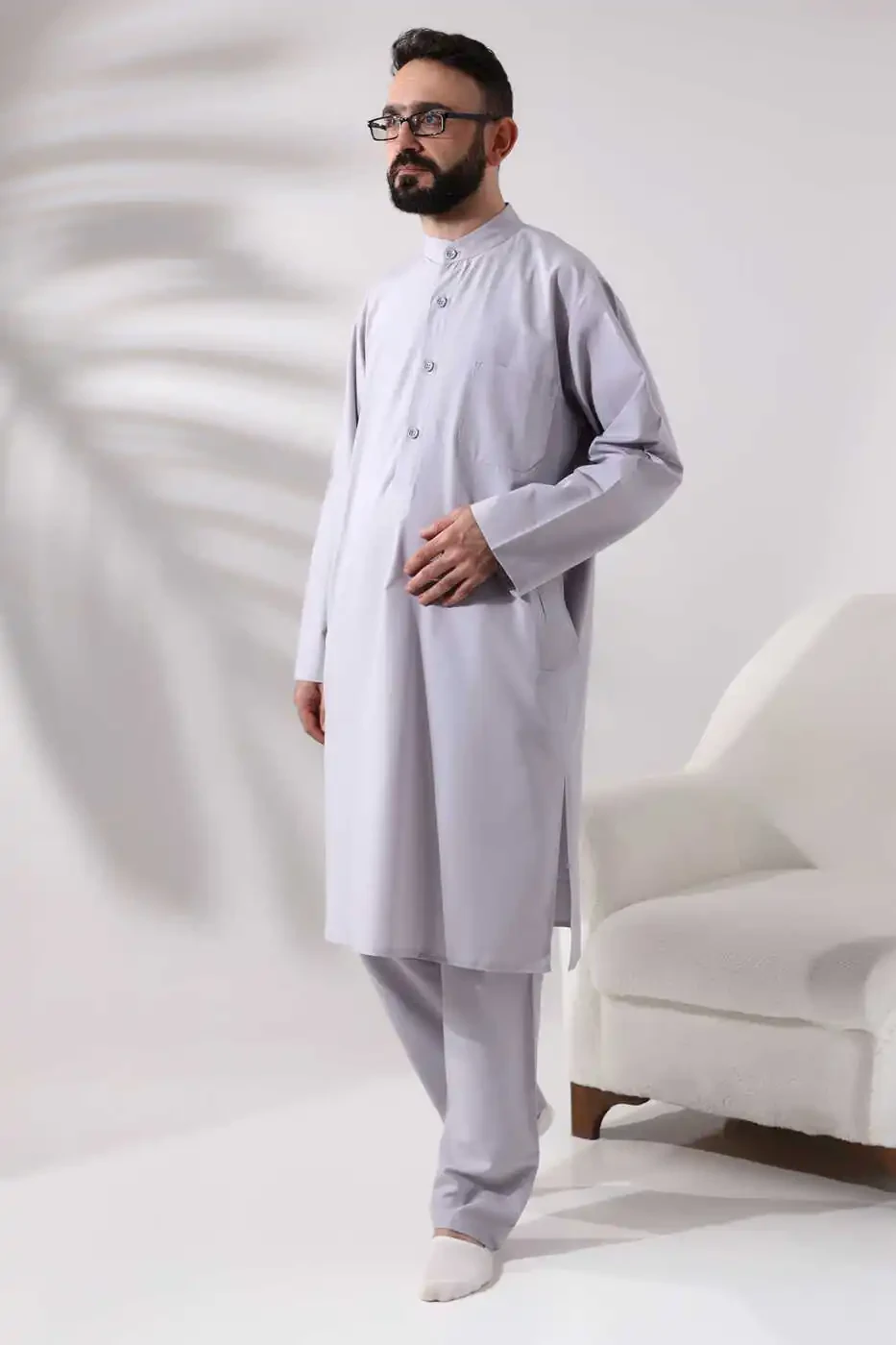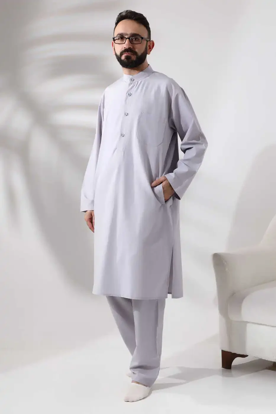 Erkaklar uchun Haj va Umra kiyimi ikki qismli Alt-ust afgʻon toʻplami kulrang rangda haj va umra amallarini ado etishda sizga anʼanaviy hamda qulay uslubga ega boʻlishingizga imkon beradi. Anʼanaviy afgʻon uslubi bilan zamonaviy qulaylikni birlashtirgan ushbu maxsus dizayn sizga uzoq ibodat vaqtlarini muammosiz oʻtkazishga yordam beradi.