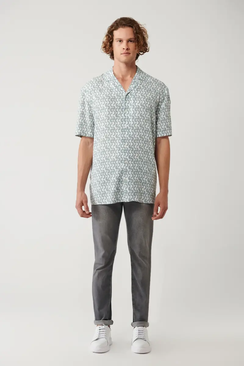 Erkaklar uchun xaki rangli ko'ylak, apaj yoqa, bosma viskoz, regular fit A41y2148 bilan har qanday muhitda uslubingizni namoyish eting. Siz ham uslubingizni aks ettiruvchi bu o'ziga xos ko'ylakni darhol savatchaga qo'shing!