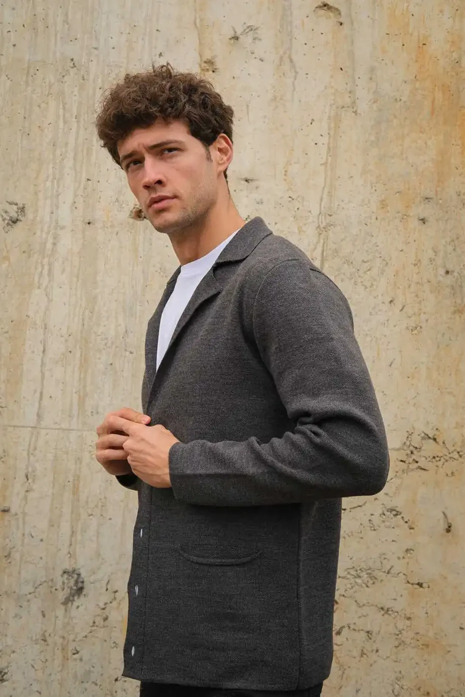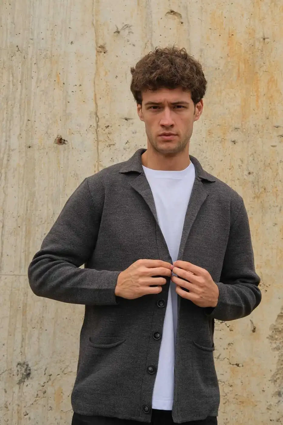 Erkaklar uchun ikki tomonlama yoqa tugmali cho'ntakli triko hırka Antrasit 23w220, uslub va qulaylikni birlashtirishni istagan erkaklar uchun ideal tanlovdir. Hoziroq buyurtma bering va uslubingizga zamonaviy teginish qo'shing!