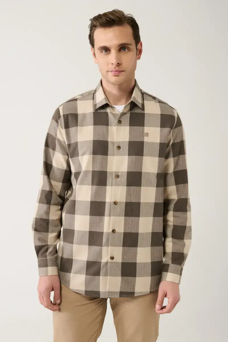 Kundalik hayotingizda qulaylik va uslubni qidiradiganlar uchun ideal tanlov bo'lgan Erkaklar uchun jigarrang oddiy ko'ylak, klassik yoqasi, oson dazmollanadigan flanel matosi va Comfort Fit kesimi bilan sizni hayratda qoldiradi. Ushbu zamonaviy va qulay ko'ylak turli kombinatsiyalarni yaratish imkonini beradi va siz har doim zamonaviy ko'rinishingizni ta'minlaydi.