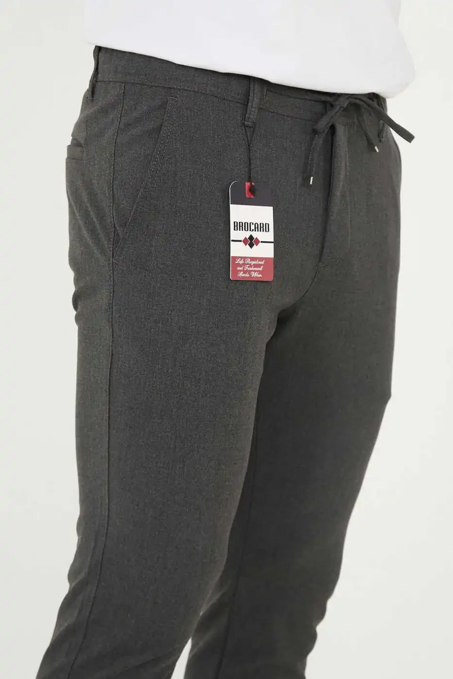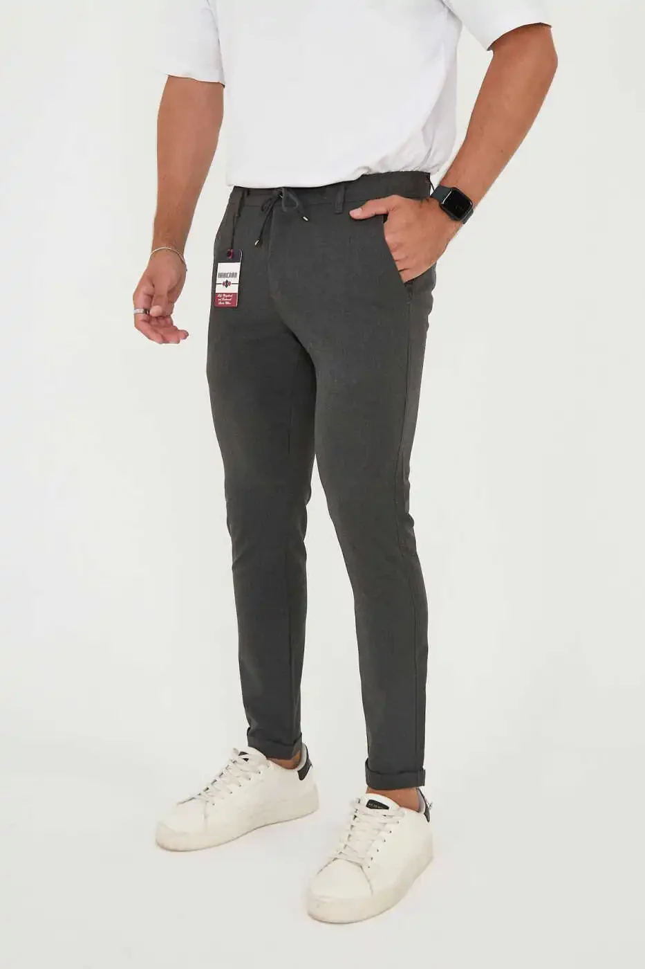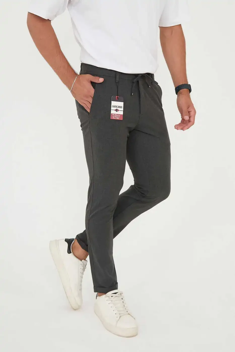 Erkaklar uchun Jogger Slimfit Yarim Elastik Belli Ikki Qavatli Shim, Antrasit Rang