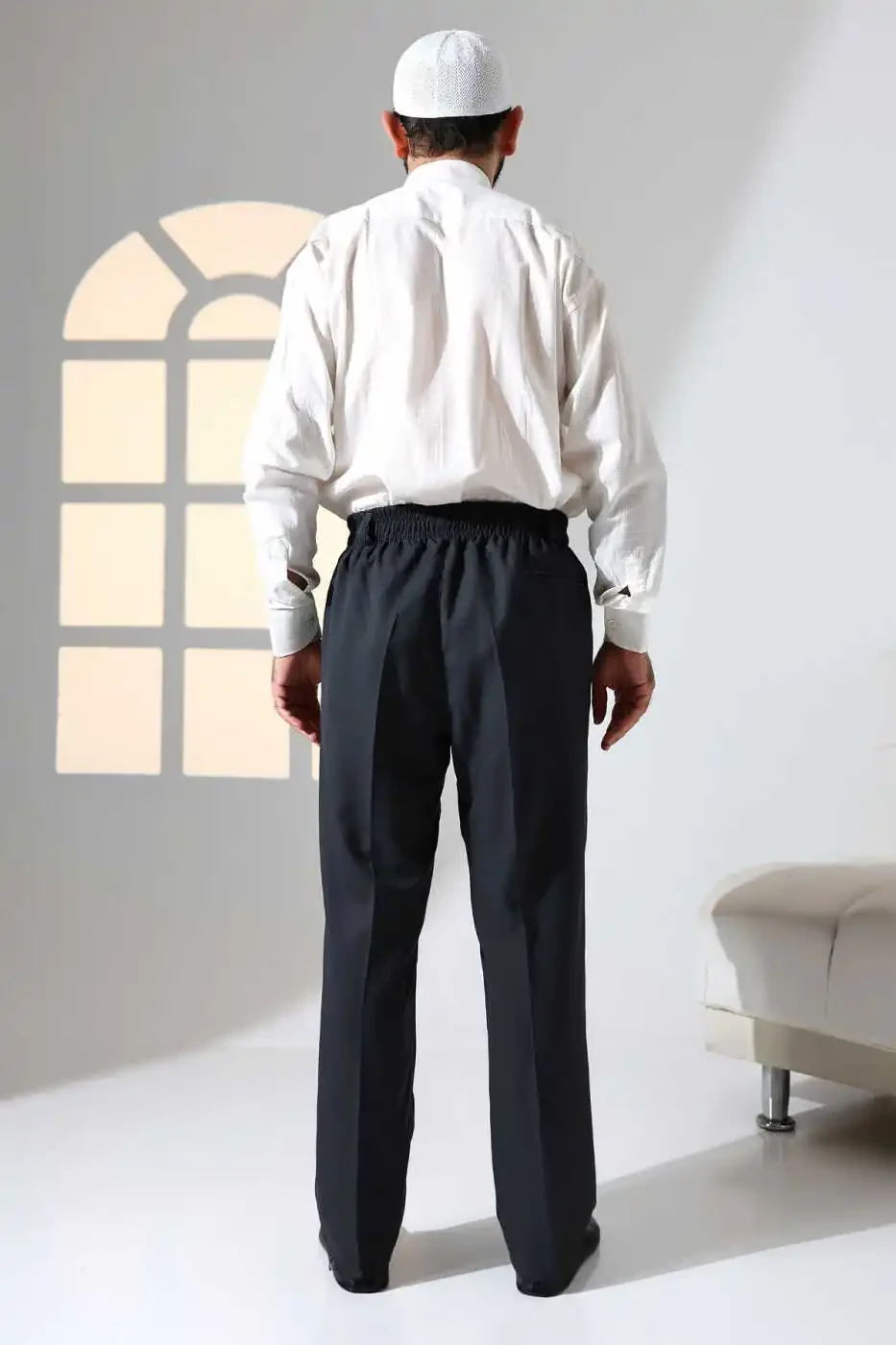 **Erkaklar uchun keng kesimli bel rezinkali chokli Hoj va Umra matosidan ishlangan ishton - Antrasit (ISR)**