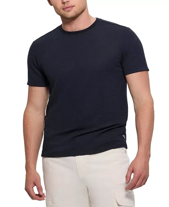 Erkaklar uchun qulay bichimli teksturali futbolka | Paxtali, qisqa yengli, dumaloq yoqali