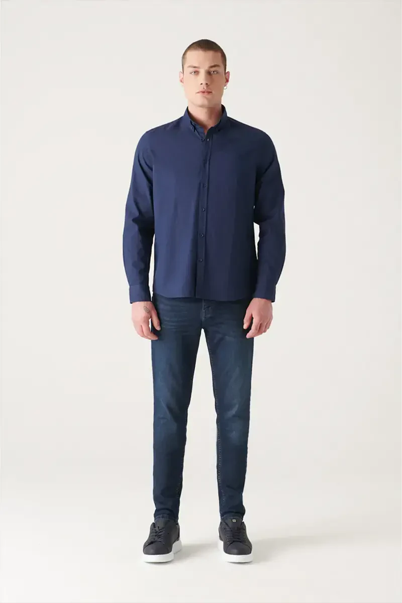 Vaqtsiz nafislik va qulaylikni birlashtirgan erkaklar uchun ko'k rangli ko'ylagimiz kundalik uslubingizga murakkablik qo'shadi. 100% paxta matosidan tikilgan bu ko'ylak yumshoq tuzilishi bilan kun bo'yi qulaylik beradi. Tugmali yoqasi va regular fit kesimi klassik ko'rinishni taqdim etadi, ko'k rangi esa har qanday uslubga mos keladi.