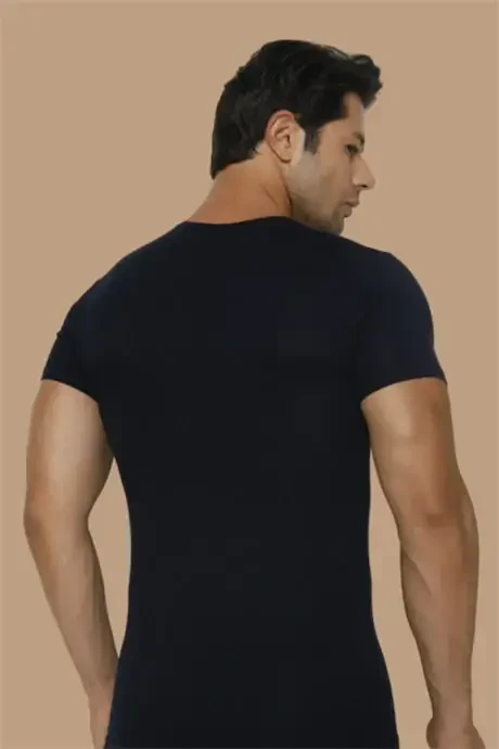 **Erkaklar uchun Bambuk Futbolka To'q ko'k rangli Kreslo yاقة****Matoning tarkibi:*** 92% Bambuk* 8% Elastan**Xususiyatlari:*** Ingichka va juda sifatli, bambuk tolalaridan ishlab chiqarilgan.* Tez quriydi, tanangizni quriq va xushbo'y ushlab turadi.* Tabiiy antibakterial xususiyatlari tufayli bakteriyalarning o'sishiga yo'l qo'ymaydi.* Nafas oladigan, yumshoq matoning tuzilishi kun davomida terlatmaydi.* Ishlab chiqarishda zararli moddalar ishlatilmagan.* Mahalliy ishlab chiqarilgan.**Maxsulot haqida ma'lumot:*** Sifatli kreslo yاقة dizayni.* Qulay va cho'ziladigan tikuvlar.* Ichki kiyim kafolati bilan qadoqlangan, tarkibi ko'rinmaydi.**Muhim eslatma:** Gigiena qoidalari sababli, ushbu maxsulotning qaytarilishi yoki almashtirilishi qabul qilinmaydi.