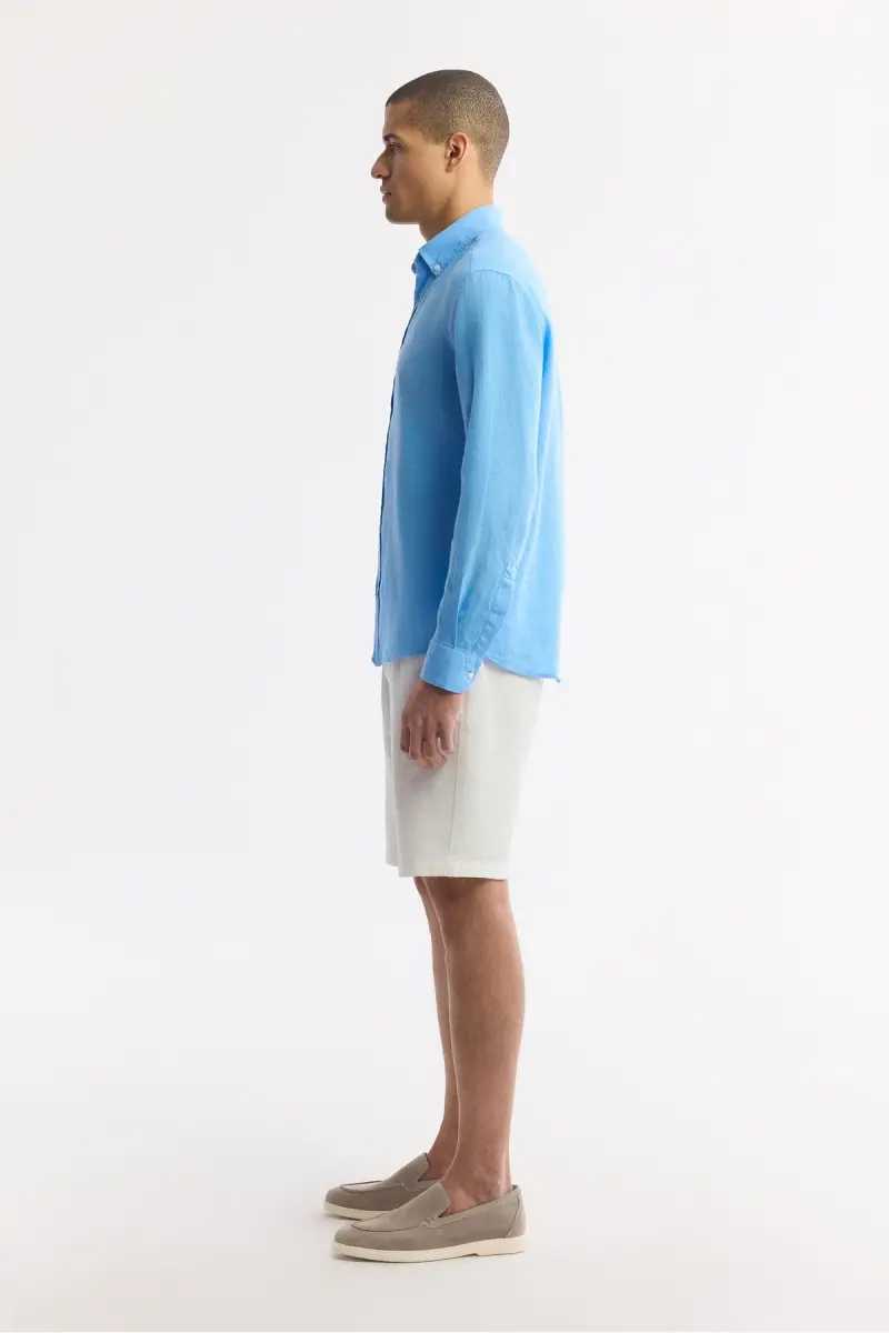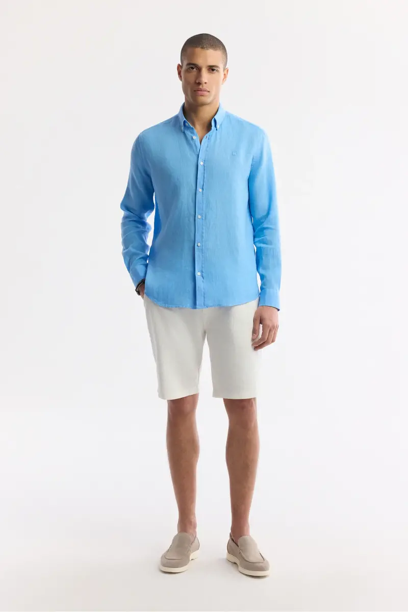 Uzoq yengli, tugmali yoqa, 100% zig'ir, nafas oladigan, salqin, qulay fit yengil kesilgan, tabiiy zig'ir yuvishli ko'ylak. Studio suratga olish paytida ranglar yorug'lik farqlaridan kelib chiqib o'zgarishi mumkin. Model bo'yi: 187 sm. Ko'krak: 97 sm. Bel: 75 sm. Kestirib: 96 sm. Namunaviy o'lcham: M